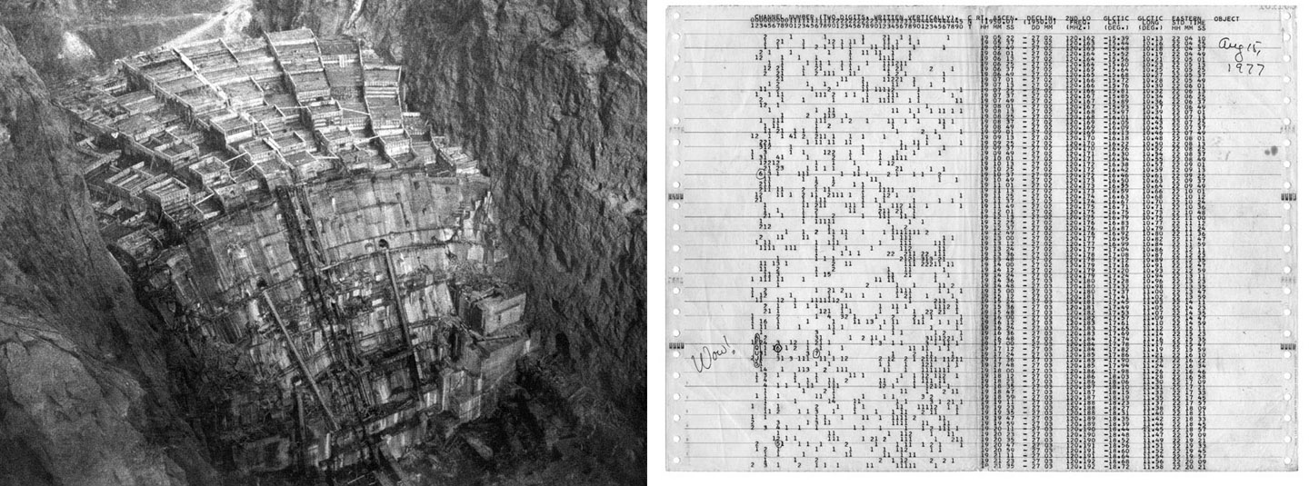 Trevor Paglen, The Last Pictures (Construction of Hoover Dam; The Wow! Signal) (2012), via Metro Pictures