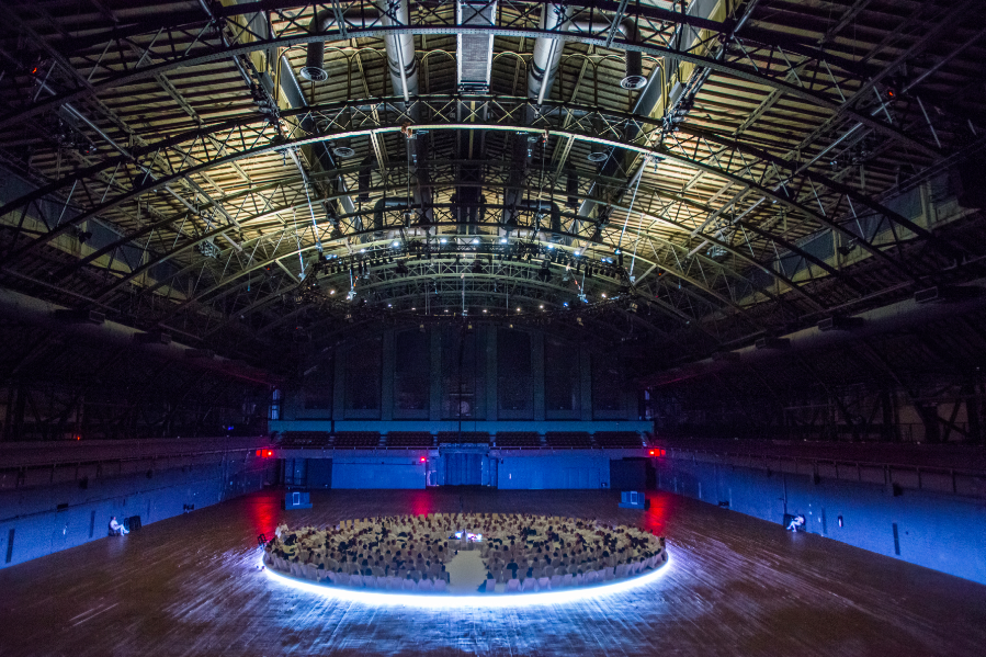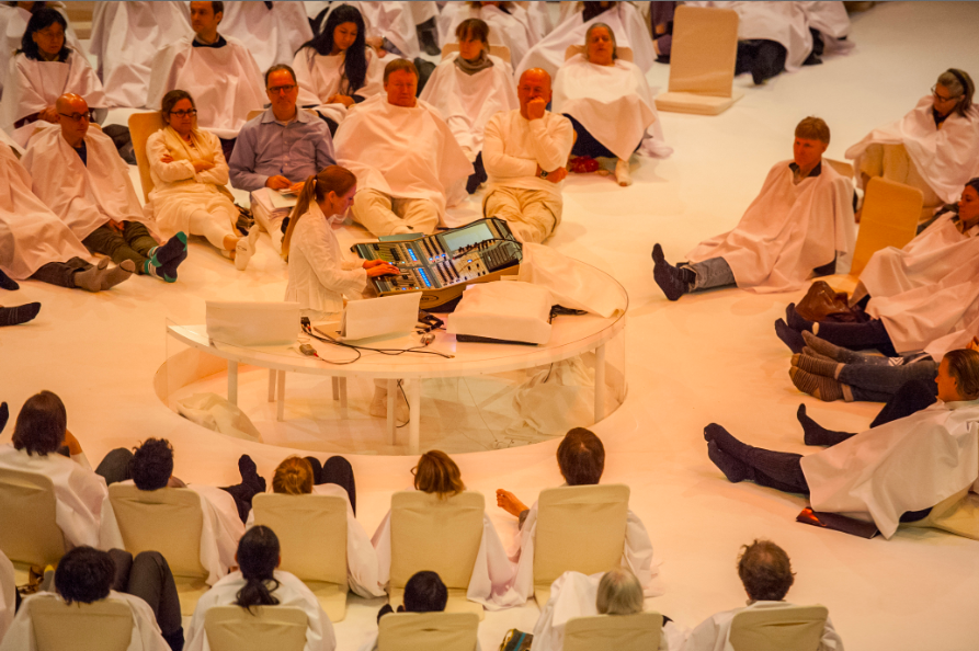 Karlheinz Stockhausen and Rikrit Tiravanija’s Oktophonie (Installation View), via Park Avenue Armory