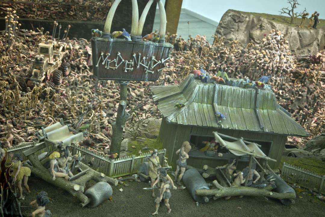 The installation, produced by the Pinchuk Art Centre, consists of four encased dioramas, each miniature scene working to create a monumental landscape. Keeping with the artists’ typically provocative nature, one diorama confronts the discovery of Babi Yar, a Ukranian mass grave where Nazi’s murdered 30,000 Jews in just two days.