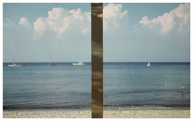 Throughout the works on view, Ghirri embraces a nuanced approach to composition, using environmental structures, passing events and juxtapositions of objects to create surreal intersections between reality and image. Shadows cross over half an image, dividing the subject into two separate parallelograms. In another, the crossbeams of a window dissect a beach scene into four equal quadrants. The image becomes subject to its shapes and forms, continually distancing the captured scene from a fully immersive image.