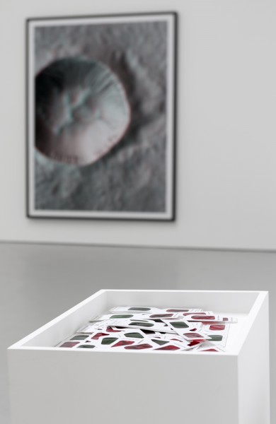 In his other series of works, Ruff appropriates NASA images of Mars, infusing them with outbursts of color and shade, interpreting the hue of the desert planet while turning other works into 3 dimensional landscapes through traditional two color techniques that require classic 3-D glasses reminiscent of cinematic camp. Ruff infuses the images with a sense of novelty that makes them almost comical, while opening new perspectives into foreign objects. Seeking to move the flat image of a foreign planet outside of the photographic sphere, Ruff highlights both the limitations and new potentials for photography in viewing the worlds outside our own.