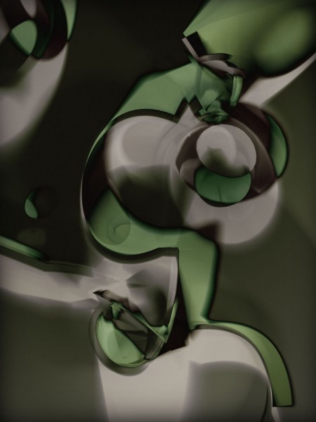 Ruff’s photograms series is constructed almost completely in digital, using a custom-built software program to simulate camera-less photography techniques pioneered by the Surrealists in the 1920’s. However, Ruff asserts a new control over the image through the striation of his own coded system, allowing him to dictate and alter the behavior of light within his “virtual darkroom.” Ruff’s assertion of control throughout the series blurs the line between natural phenomena and traditional modes of authorship, a hybrid set of works that succeed in exhibiting a wholly new set of images.