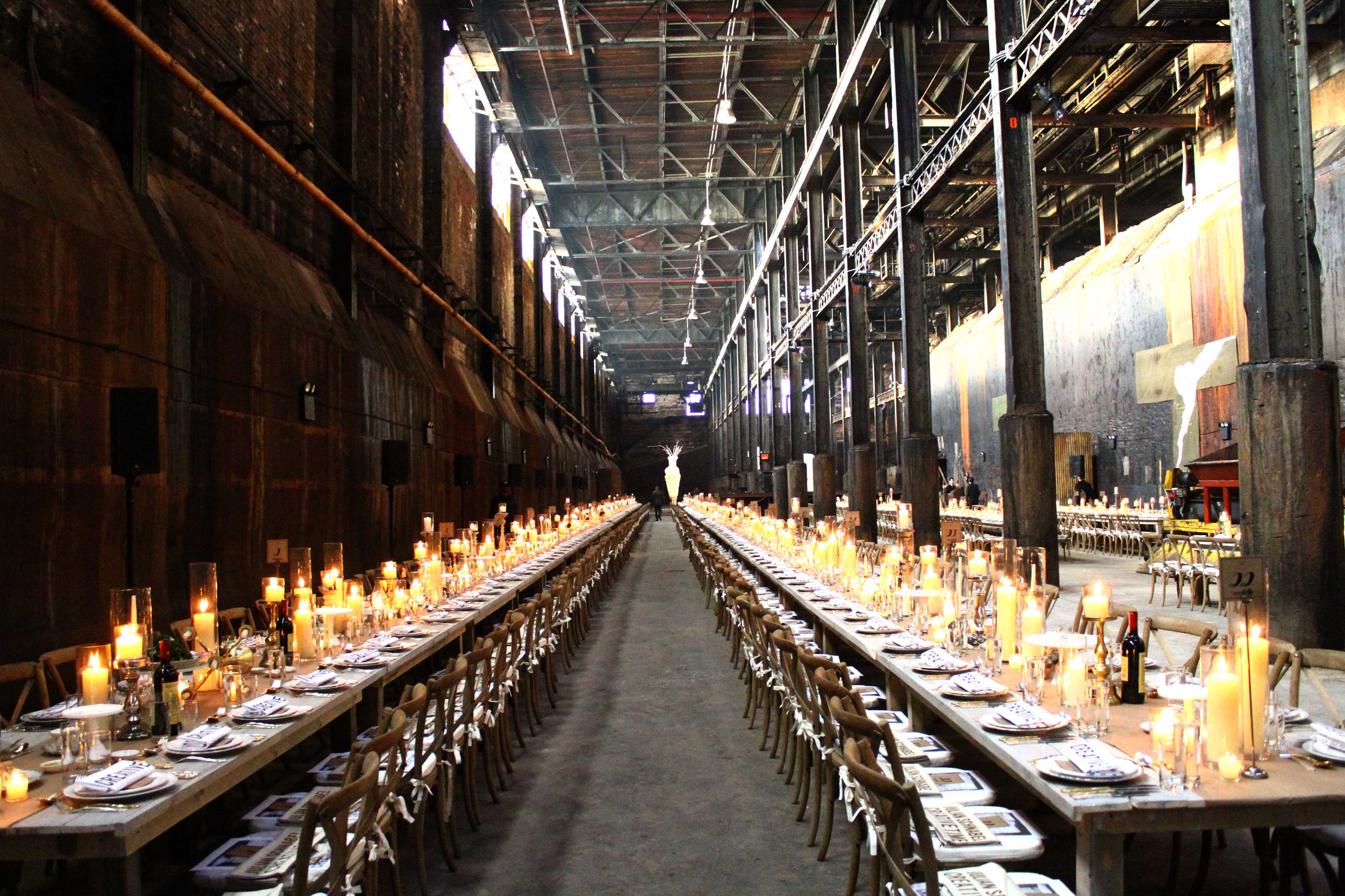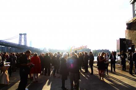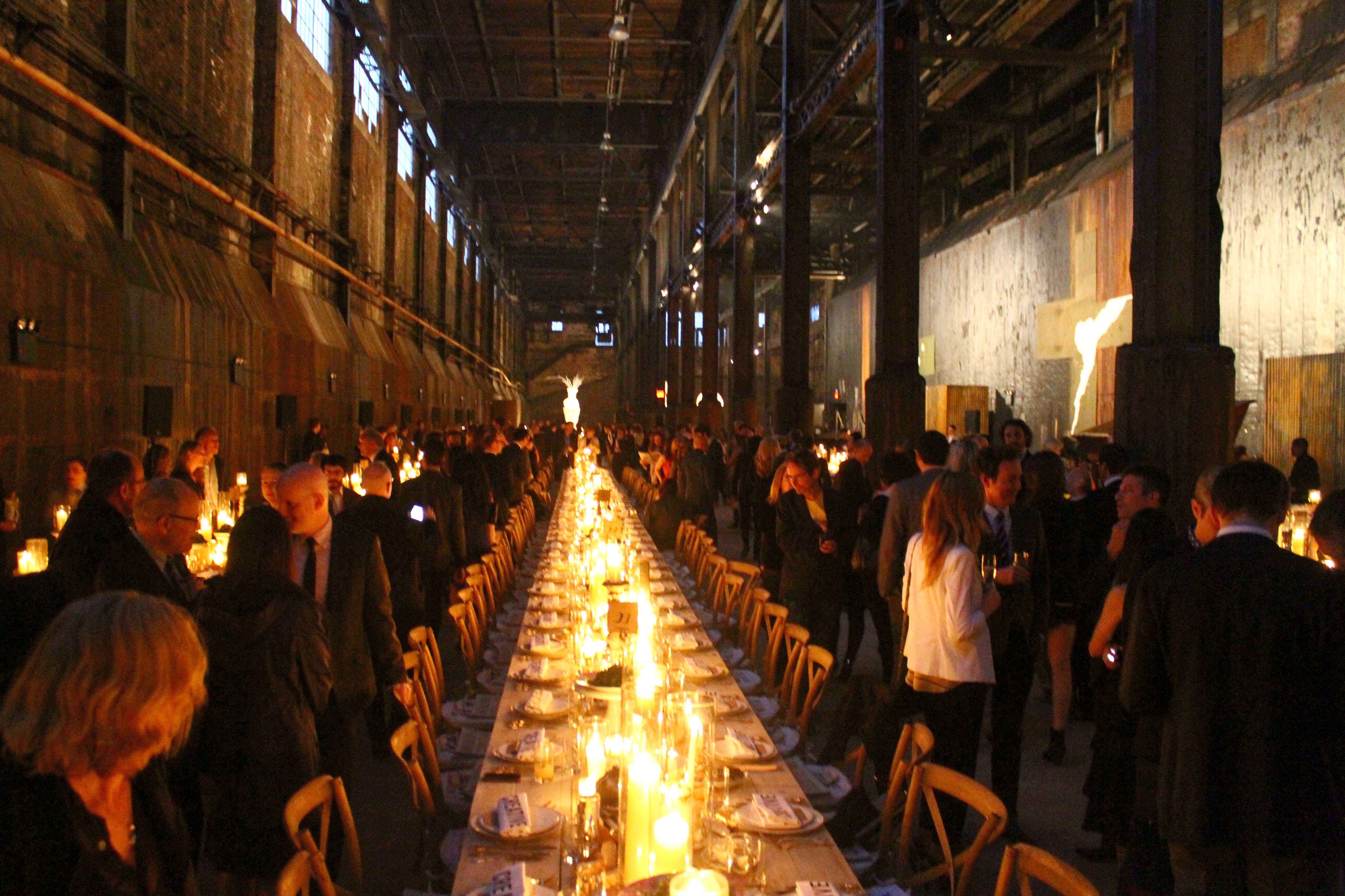 Guests were welcome to a reception outside the factory before dinner, with a striking view of the Williamsburg Bridge dominating the skyline. Among those in attendance were Marisa Tomei, Urs Fischer, Shirin Neshat, Tony Shafrazi, Melissa and Robert Soros, Lyor Cohen and many more. Art Observed was on site to photograph the event, and captured these highlights from the evening.