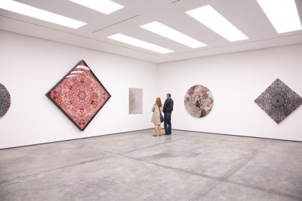 In this latest exhibition, Hirst plays within his usual field visually stunning works that are masterfully artful in their creation. The patterns and forms produced by Hirst are often reassuring reminders of the underlying order humans impose on chaos, but are ultimately affective for their power to stir our senses and make us aware of the the darker corners of our pleasure.