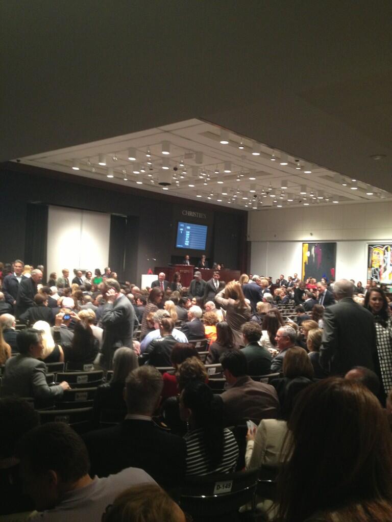 Christie’s contemporary evening sale made history last night in grand style, storming through its 72 lots to realize a world record $495 Million sales total that included new auction records for Jackson Pollock, Roy Lichtenstein, Jean-Michel Basquiat, and 13 other artists, aided auction house’s impressively assembled catalog. Hailing a “new era in the art market,” according to auctioneer Jussi Pylkkanen, the show achieved an almost unheard of sell-through rate of 94%, with only four works failing to find buyers. The sale also continues Christie’s growing dominance in the auction market, eclipsing the previous night’s sale at Sotheby’s with little difficulty.