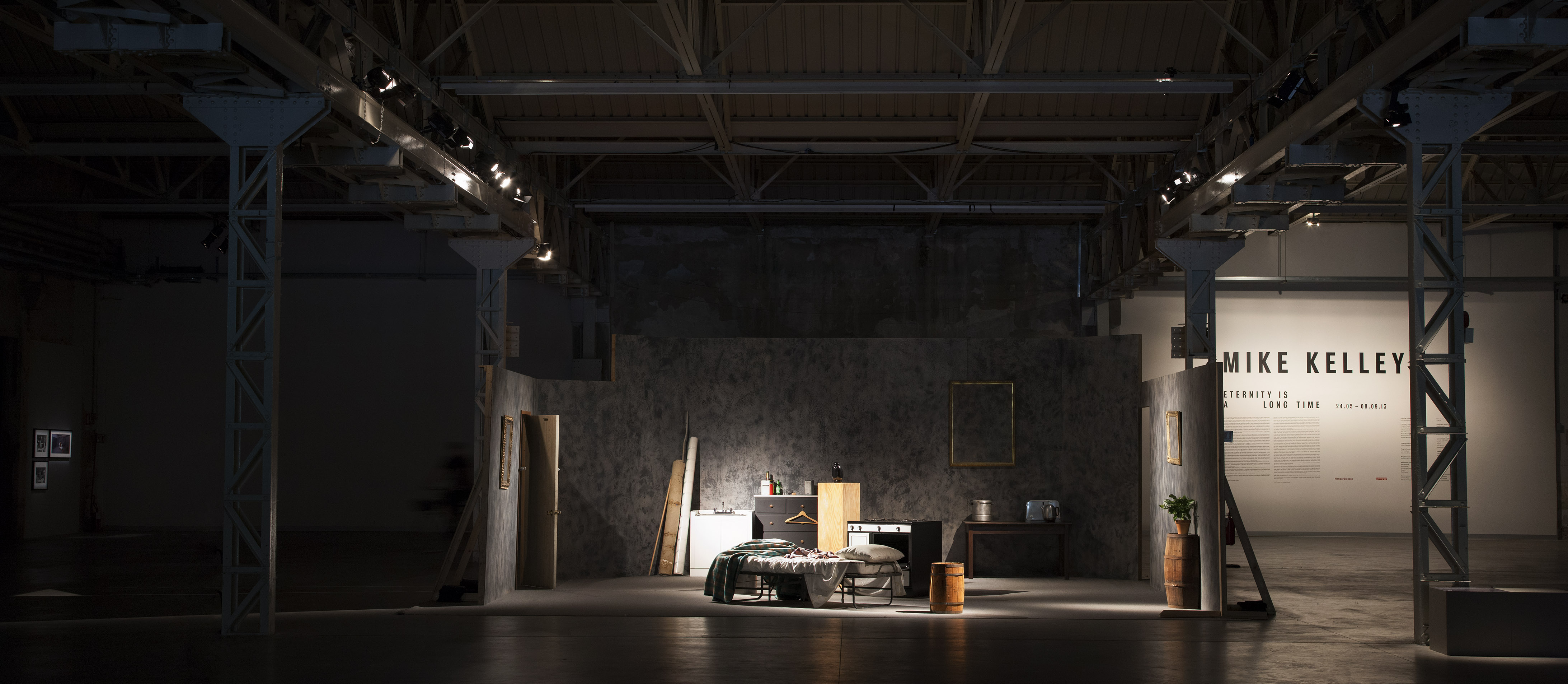 The show, titled Eternity is a Long Time, takes its name from the dialogue in Kelley’s film Extracurricular Activity Projective Reconstruction #1 (A Domestic Scene), a powerful investigation into psychological dependency, suicide and repression that the curators selected as a prime example of Kelley’s later work, tying into his increasingly diversified references to American literature, social mores, and intermingling of traditional theatre with video and sculpture, all while managing to incorporate strong autobiographical and personal histories into the fabric of the work. It was a defining piece, that projected Kelley’s remarkably growing abilities while also hinting at the tragic depression that would eventually claim his own life.