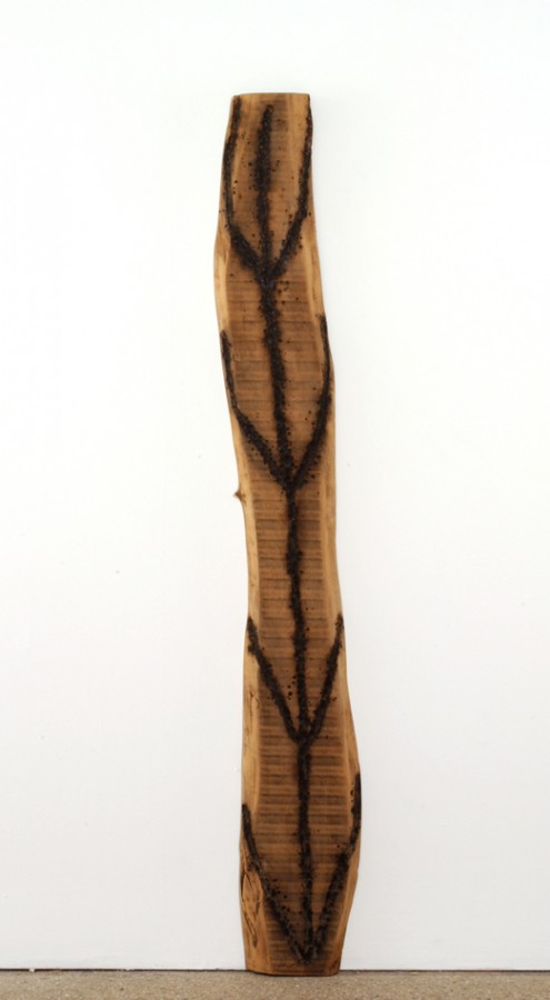 The employment of earth and body, brought here in two distinct approaches, furthers Mendieta’s versatility of form and concept. The artist created these female figures, some of which were lost in the process (with only documentation remaining), as fertility goddesses, tying in spiritual and mythical undertones to her work that further her artistic aims. Additional sculptures in the exhibition are examples of the artist’s use of earthy materials, such as leaves, soil, tree roots, sand and wood, bringing to mind mother or female deities. In one example, a fascinating work made out of fern root (Fernwoman, 1982), recalls African deities.