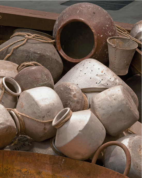 Subodh Gupta, What does the vessel contain, that the river does not (2012) (Installation View), via Hauser & Wirth