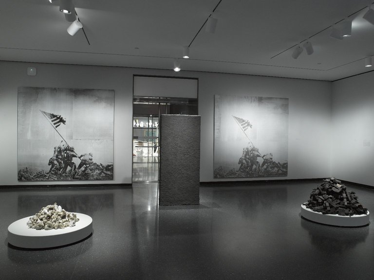 In a society defined by cultural consumption, aesthetically refined identity, and the increasing intricacies of art as financial capital, the BHQF seems to understand the role of art, both as a part of the global milieu, and its capabilities for working outside it, helping to define and recontextualize its inherent pluralities. It is for this reason that the show’s size and scope works so well. Carefully selecting from their artistic output, thematic elements and cultural signifiers are given room to breathe, and running narratives throughout the works are welcome to rise to attention. For example, the visage of Marlboro Cigarettes appears in a variety of forms throughout the exhibition, both as a facetious “sponsor” of some of the collective’s video works, and as a sculptural element throughout their works. At turns exemplifying the self-destruction inherent in cigarette smoking, American constructs of freedom, masculinity and classic values, or the daunting scope of corporate conglomerates (Robert Morris’s ownership of Kraft Foods is mentioned in one video work), the BHQF paints an image of a society where cultural capital and commercial image has become a nearly ubiquitous force, shifting and changing based on its context and presentation.