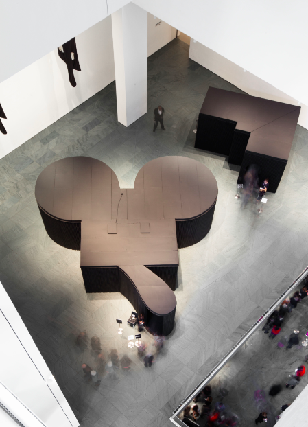Also on view in the museum’s mezzanine is the The Mouse Museum/Ray Gun Wing, a parody of the institutional forms of the museum.  Inside, stylized miniatures collected by Oldenburg throughout the years are on view. Upon entering the dark space with both rounded and straight walls the visitor is welcomed to view the objects curated in glass boxes along its walls. A dark tune is playing, giving the room a somber, melancholic feeling that conjures the image of a tomb to American culture.  It offers a powerful counterpoint to the image of the museum retrospective as a place where dead ideas and concepts go to be entombed.  While somewhat oblique given Oldenburg’s acceptance into the mainstream canon, the piece is a perfect conclusion to a look at an artist who consistently challenged the values of post-war America.