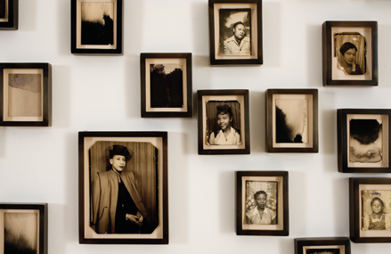 The exhibition also includes more whimsical work, such as Gold Headed (2013), a series of powder and ink drawings; airy portraits filled with color, and “Photo Booths,” a collection of found photos, often historical, and drawings (Gather, Please remind me of who I am…). Unlike the previous photos mentioned, these pieces are a different visual experience altogether, lighter and more open ended while never abandoning deeper intellectual meanings.