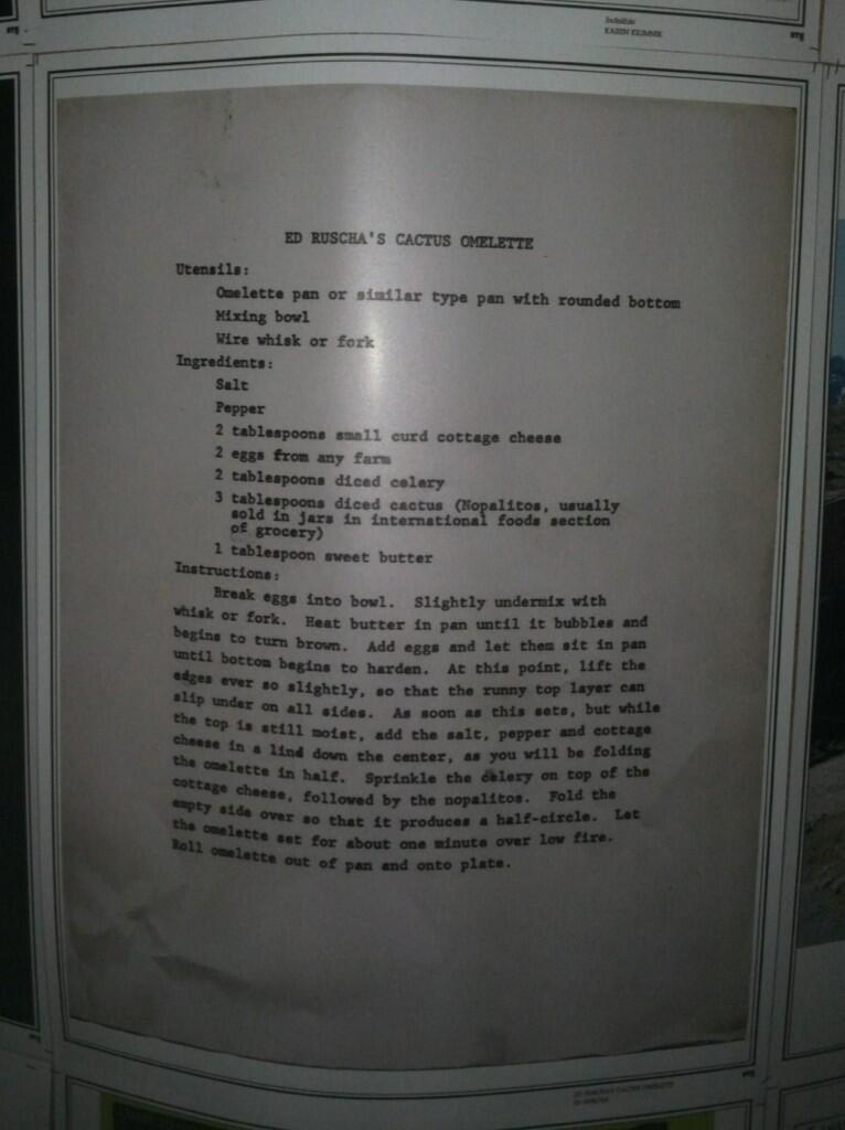 “Ed Ruscha’s Cactus Omelette,” via Daniel Creahan for Art Observed