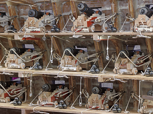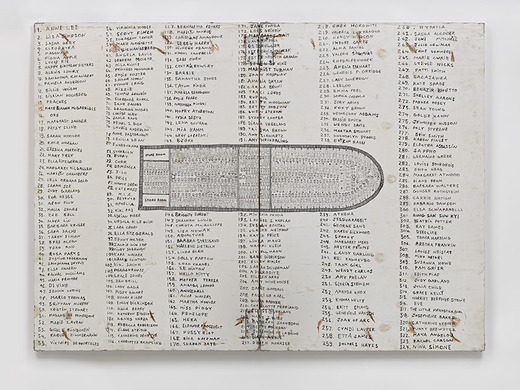 Tom Sachs, Barbie Slave Ship (2013), via Artist’s WebsiteThe sculpture, created specifically for the Lyon Biennale, is exhibited alongside 5 other sculptures, as well as 2 of Sachs’ paintings, and is on view at Sachs’ work will be exhibited in Saint-Just Church, a national monument located near the remains of Lyon’s Gallo-Roman settlements on Fourvière Hill. Once again addressing Sachs’ interest in the shifting meanings and conceptions of consumer products, the Barbie Slave Ship signals perhaps one of the artist’s most meticulous works. Gone are the rough hewn edges and jagged wooden forms of his earlier pieces, instead favoring painstaking detail and copious accompanying material, including a ledger of captive passengers on the ship, perhaps the darkest moment of the show, where the artist abandons playful preaching for a truly jarring moment of pause.