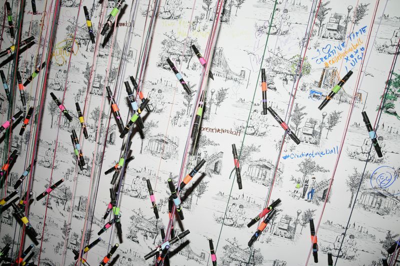The event, hosted by Creative Time board member Jon Neidich, featured a number of multi-media installations, performances and other creative decorations of the nightclub’s expansive rooms. Artist Alex Da Corte delivered a number of large-scale, rubber-dipped roses, which were spread around the event. Nearby, one could view Williamsburg Toile, an installation by Ruffian and John Gordon Gauld, inviting guests to draw on wallpaper depicting Brooklyn landscapes. Unexpected performances, appearances and more popped up over the course of the night, giving the event a multifaceted, carnival-esque atmosphere.