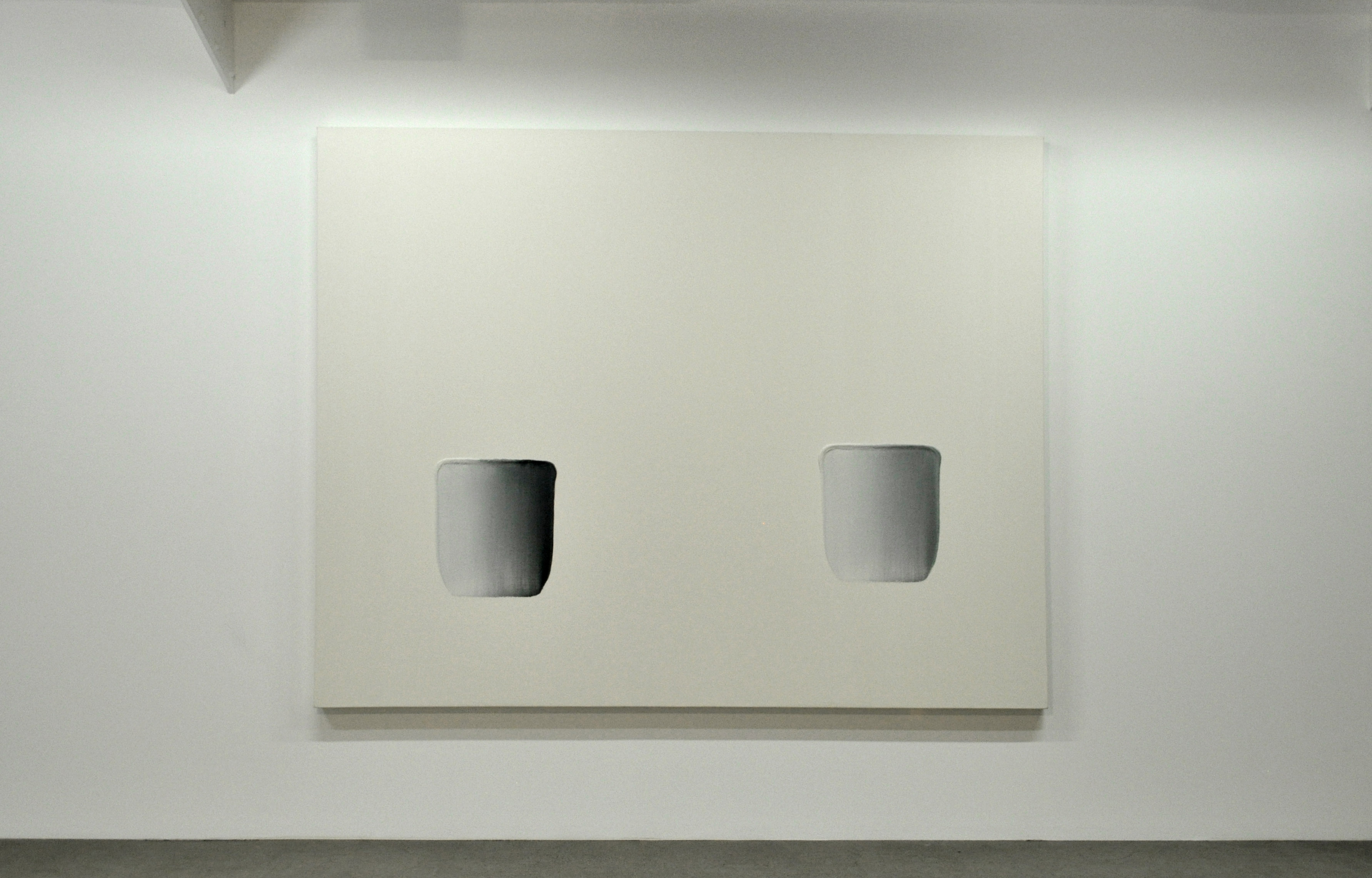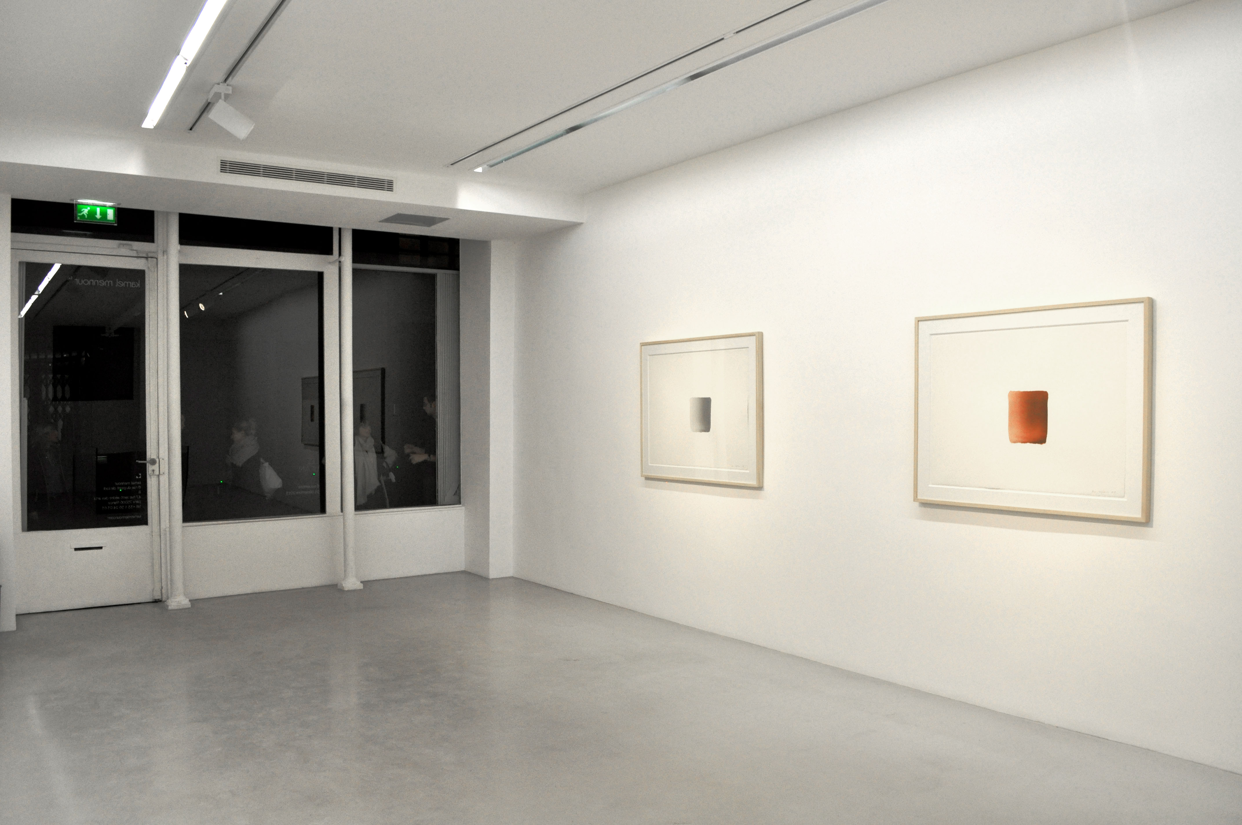 The form, perhaps best described as a 2-dimensional relief of a container of sorts, runs throughout each of the works, occasionally appearing in multiples. With each mark, the artist seems most interested in examining the contrast produced by a single object, particularly one with a vaguely evocative, almost quotidian aura. As the viewer alternates between the suspended reality of the object, and the multiple interpretations of space that it gives off, the forms of daily life are brought into a broader reflection on the relation of the viewer to the object, and the object to the human interior.