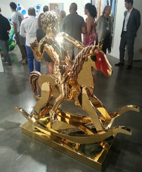 But the fair offered prime successes beyond the highest ends of the market.  Middle market galleries also performed well at the well-attended fair.   “Art Basel Miami Beach was great this year. The quality of the Nova section, where we were exhibiting, was very high. Our two person booth with Shannon Ebner and Chris Johanson was very well received both critically and in terms of sales.”  Said dealer Claudia Altman-Siegel of Altman-Siegel Gallery.  Also of note was artist Bradford Kessler’s Eternal Boy, a limited edition sculpture available just outside the fair’s main grounds at the Printed Matter booth. Paying a winking tribute to the classic Renato Bertelli sculpture of Mussolini, Kessler replaced the dictator with the profile of Bart Simpson, offering a bizarre yet apropos take on commercial culture and the art historical.