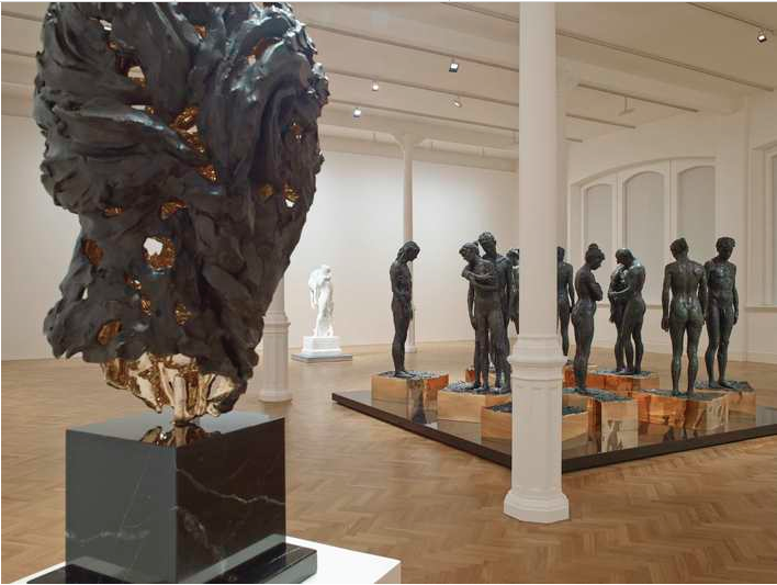 The group of nude figures, entitled Twelve Chambers (2013), allows visitors to walk between the group of sculptures, in a way becoming part of the group of isolated beings. Gray modeled these figures after people he met in the area around his studio in London, whom he brought inside and sculpted from life. Themes that emerge from the works reflect Gray’s fascination with a feeling of isolation juxtaposed with the reality of being surrounded by others, and the fluctuating comfort and discomfort that results. He also approaches the concept of unrealistic physical perfection, giving new meaning to the conventions of ancient Greek and Roman marble sculpture.
