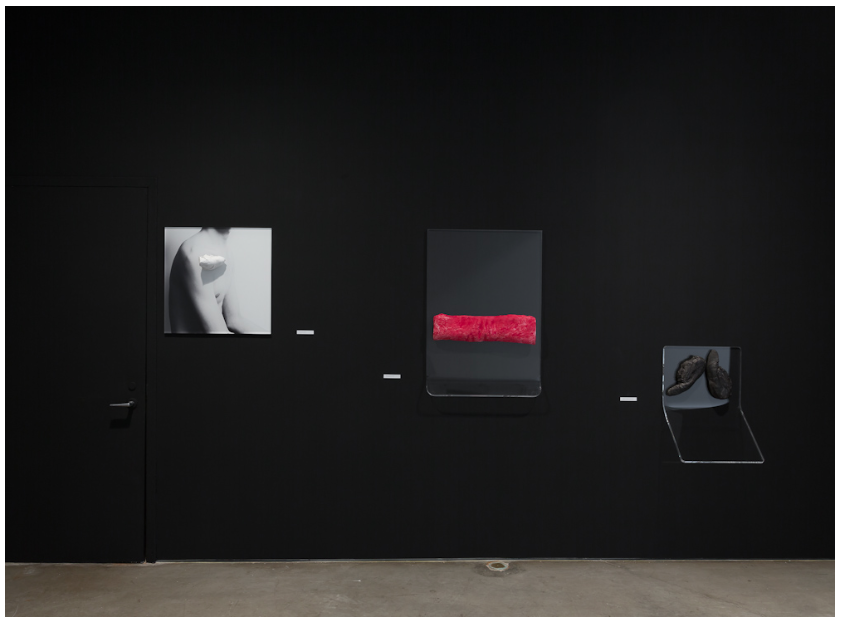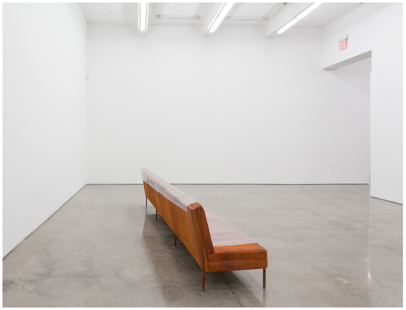 Besides the wall sculptures made of acrystal, Perspex and acrylic paint (cast from cuts of meat), and the painterly wool works, the exhibition also includes a large-scale steel and plastic sculpture in the shape of two sofas, entitled Copy Me. Trockel has repeatedly used the motif of copying throughout her career, “as an effort to challenge predetermined conceptions of representation.”