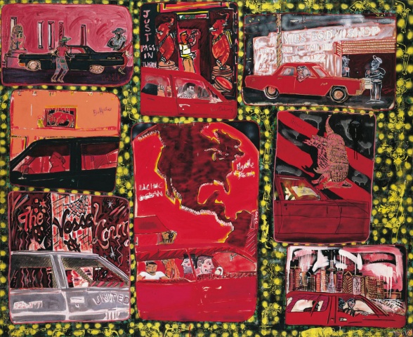 Born in 1959 in Edinburgh and raised in Trinidad and Canada, Doig learned the craft of traditional painting in London in 1979 and remains open to the possibilities of the more traditional form, yet he strives to explore new potentials and “reimagine” what paint can do, often combining the mediums of photography and cinema together with the painted canvas. Major influences for Doig range vastly from The Hairy Who and the Chicago Imagists, Miró, Chagall and A.R. Penck, to Pop Art and popular culture, cinematic images, and the concept of the recurring motif.