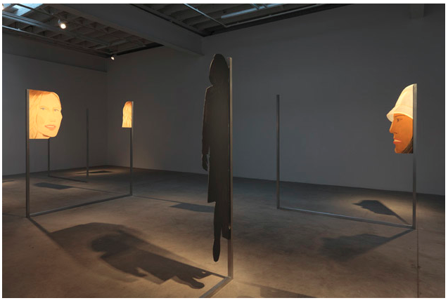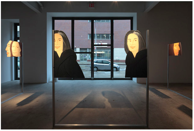 In 1959, Katz made his first cutout by removing the central figure from a painting with which he was dissatisfied, and then affixing it to another canvas. He continued this practice through the 1960s, after which he began working more frequently with aluminum. These new works are presented alongside the film of Dara Friedman, partially because of the significant impact the medium of film has had on Katz’s artistic choices. He has employed the extreme close-up, dramatic perspectives, and different framing techniques, for example, in his new cutout works. Other formal techniques he has used include repetition, erasure, enlargement, reduction, and reproduction, in an effort to achieve a directness and intimacy that is more readily accessible to the medium of film, and particularly notable in Friedman’s film on view.