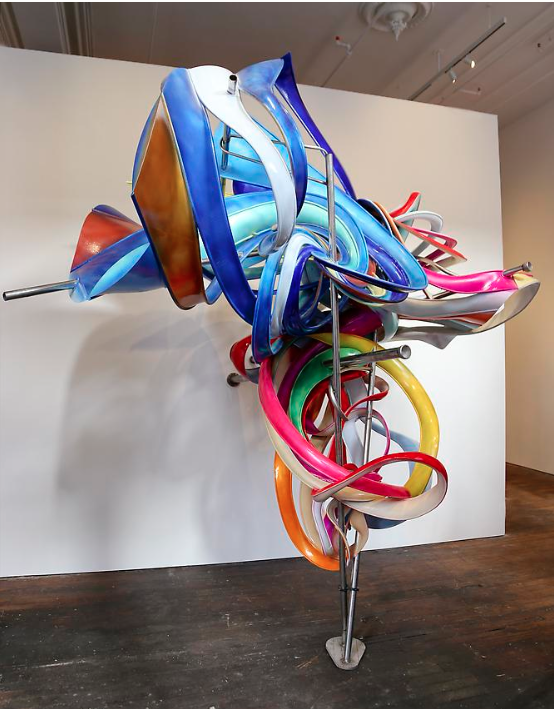 On view at Peter Freeman, Inc. is a solo show of recent sculptures by Frank Stella, drawn mostly from his series Scarlatti K and Circus which were created using 3-D printing technology and metal pipes and rods. The exhibition will continue through February 22, 2014.