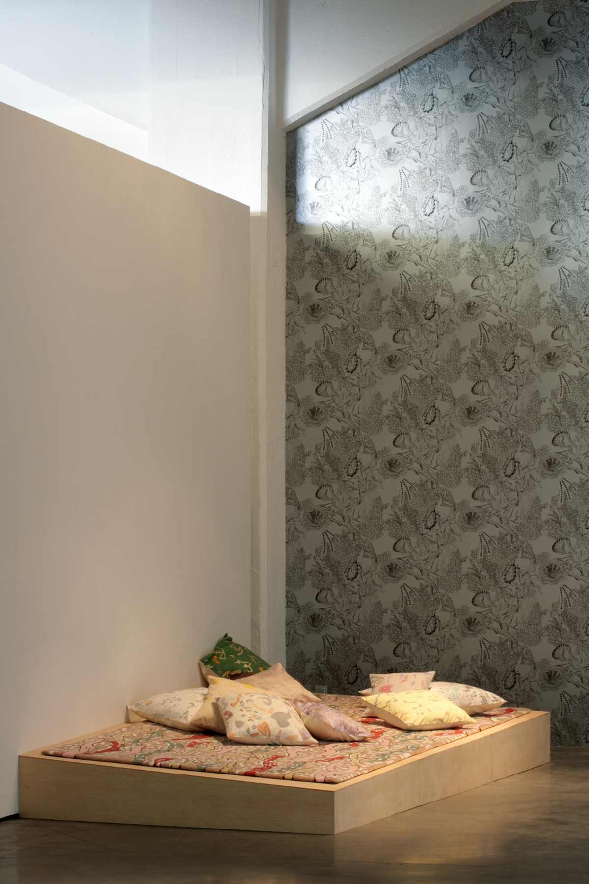 The exhibition has been organized into a series of installations according to theme rather than chronology: The Painterly, The Decorative, Orientalisms, Primitivisms, and The Sculptural. Artistic director Marc-Camille Chaimowicz has included props in between the works to help tell the story of the history of the tapestry in a playful, engaging way. Along these lines, visitors to the exhibition are even invited to sit on Franz West’s sofas on which his rugs are draped, and the show is not limited to rugs, but also includes gowns, petticoats, and quilts.