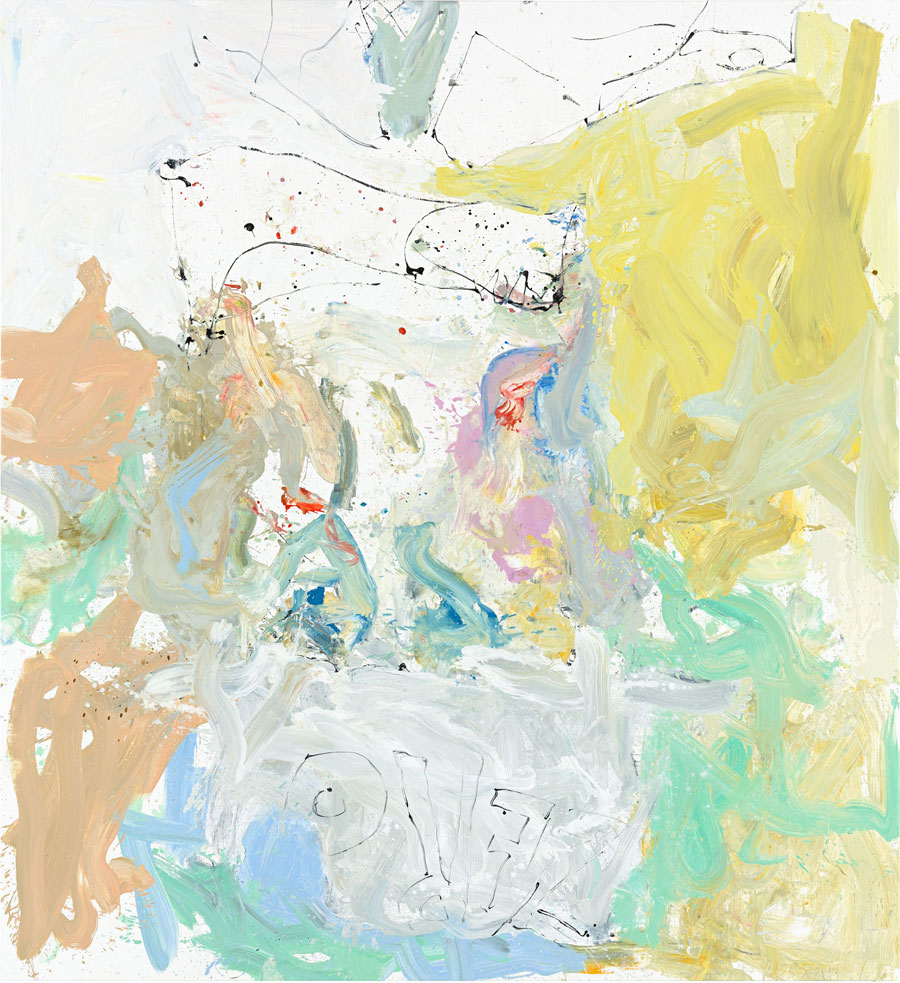 The new series of works, on the other hand, represents a complete departure from this concept, focusing on new material and impulsive, “imperfect” creative techniques. For these new paintings, Baselitz painted the canvas on the floor as rapidly as he could, leaving marks of paint cans and footprints so as to reveal his own process within the final work. As an homage to Dutch-American abstract expressionist Willem de Kooning, the works focus on freedom from the obsession with perfection and an openness to fluidity, risk, and spontaneity.