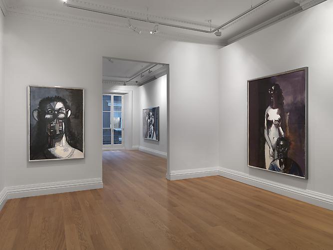 Compared with his show of works across town at Simon Lee, the works here are markedly more subdued, more dark and withdrawn, while remaining definitively within Condo’s body of work. Twisted, horrified faces are contrasted with simple, masterful facial studies, while nearby, other works focus on sparse, full-body studies and twisted figurations. It’s a particularly jarring series, that underscores a fierce, frenetic energy that has made itself felt in Condo’s works recently, and which perfectly plays against the vibrant, occasionally comical paintings showing at Simon Lee.