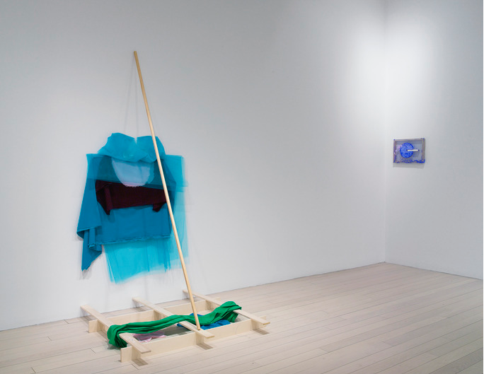 Though he is best known for his small, subtle works, Tuttle has been commissioned this time by the Tate Modern to create a large scale piece to be suspended from the ceiling in the museum’s Turbine Hall. The work, which will span 40 feet in length, will incorporate textiles he has designed and fabricated himself, and the works in the current exhibition are his preparatory drawings and textile studies.  Here, Tuttle applies his material concerns and commission to a series of pieces concerned with the language and architecture of balance, leaning objects against each other, and placing others in stark opposition.  Taken as a whole, one notes a considerable space between objects, creating a disjointed but compelling viewing.