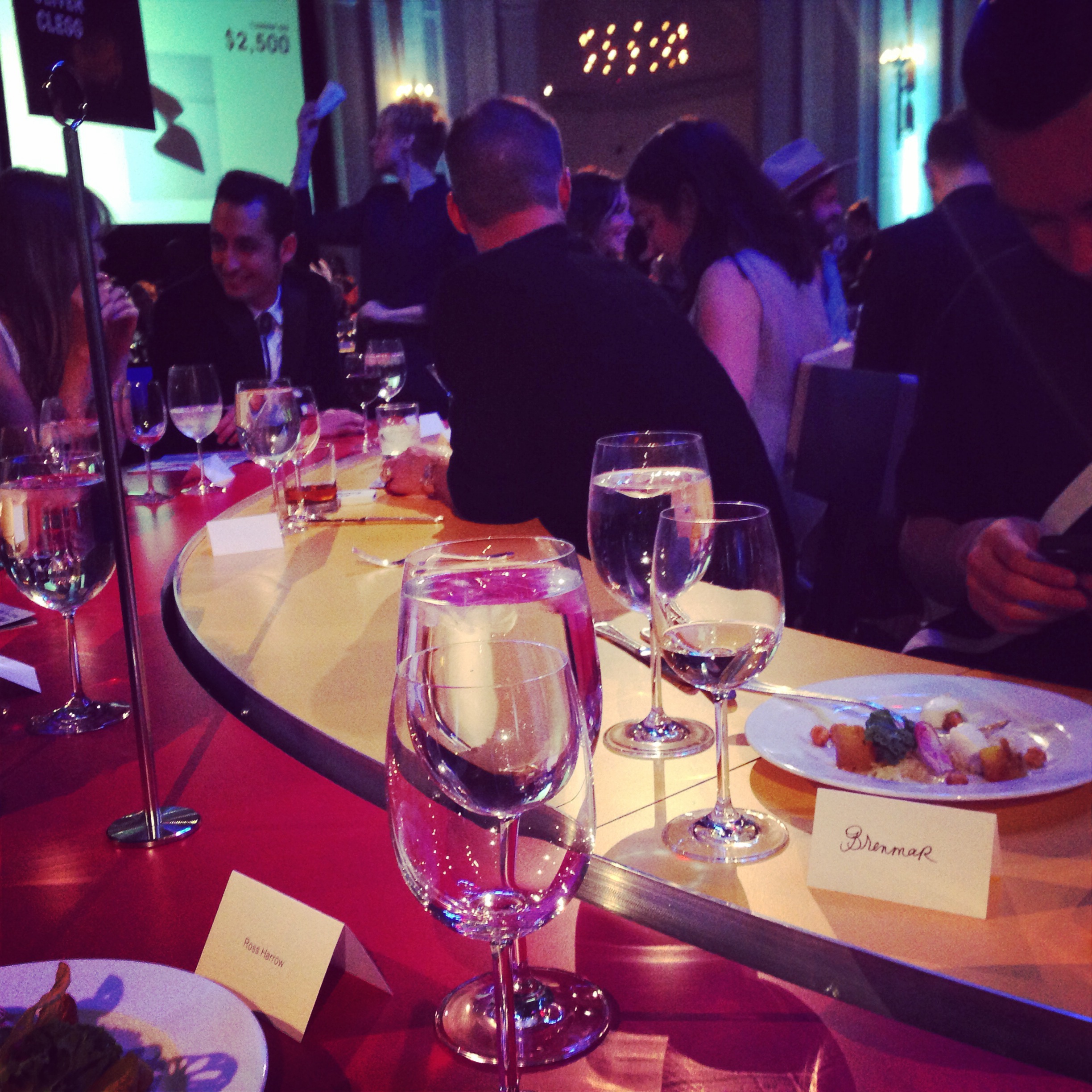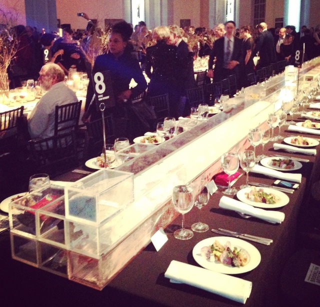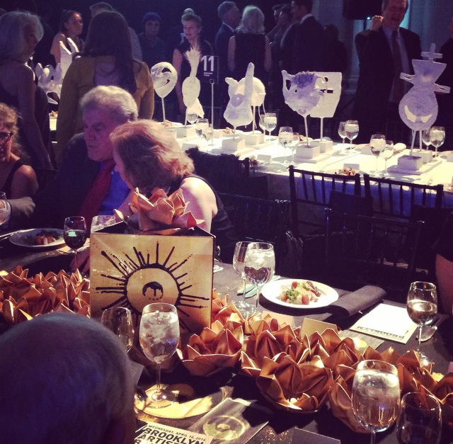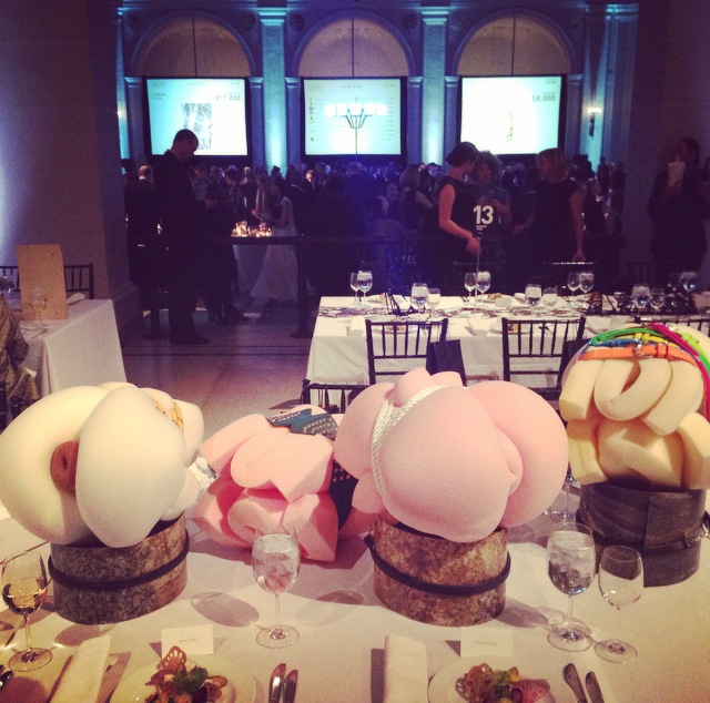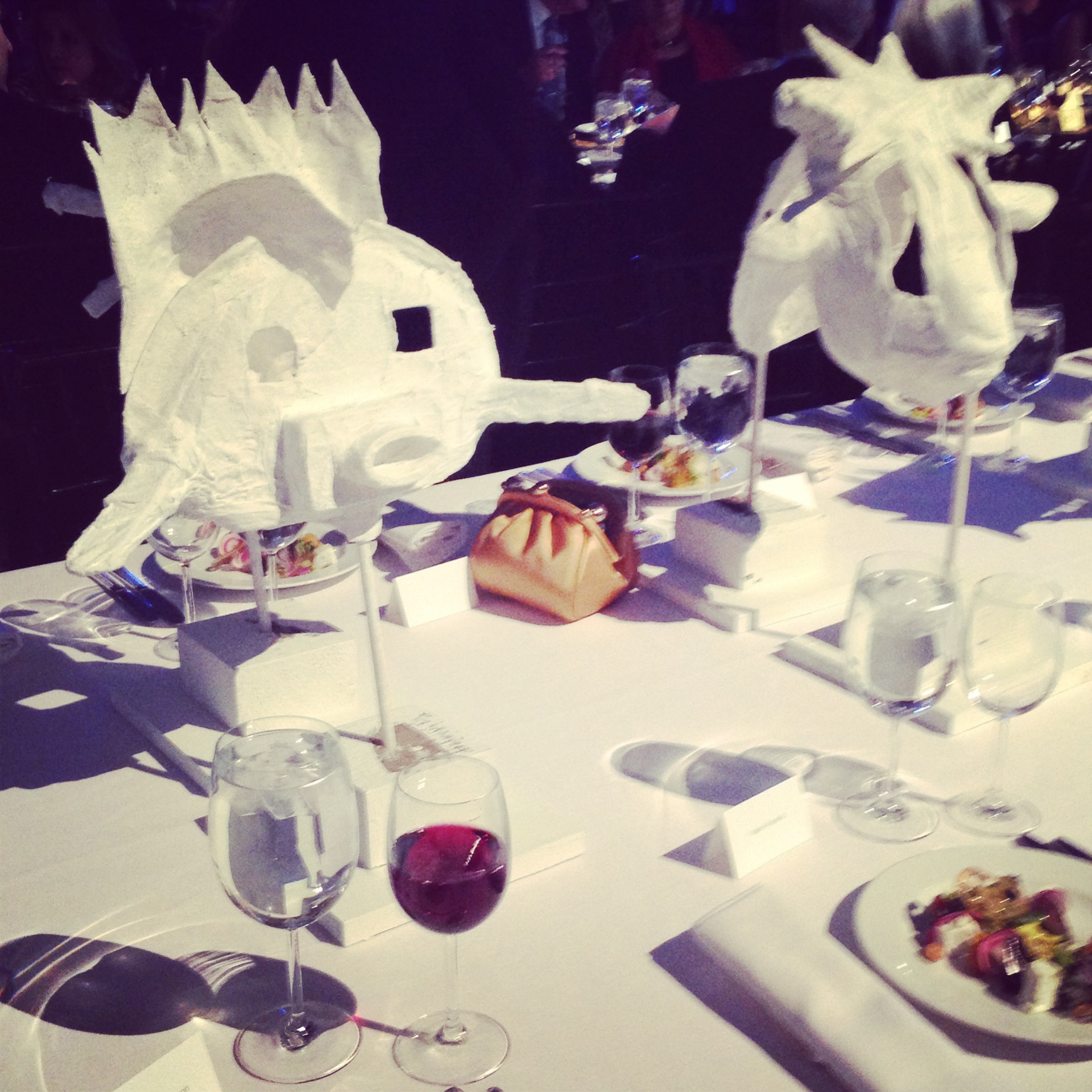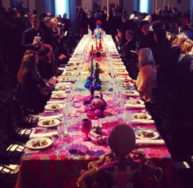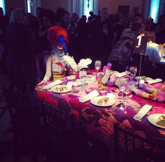 Celebrating the talents of New York City’s second borough, the Museum invited a group of 16 artists, including Oliver Clegg, Orly Genger, iROZEALb, Rico Gatson, Heeseop Yoon, and Ghost of a Dream to design table settings and dioramas for the event, adding an imaginative flare to the evening. Similarly interactive installations and pieces were also on view from Bruno Levy and Blake Shaw, who created an enormous media projection which allowed guests to draw on-screen, tracing enormous, moving lines across a colorful surface. Other highlights included a bizarre setting featuring parts of the female anatomy by Adam Parker Smith, and one featuring Orly Genger’s signature rope sculptures.
