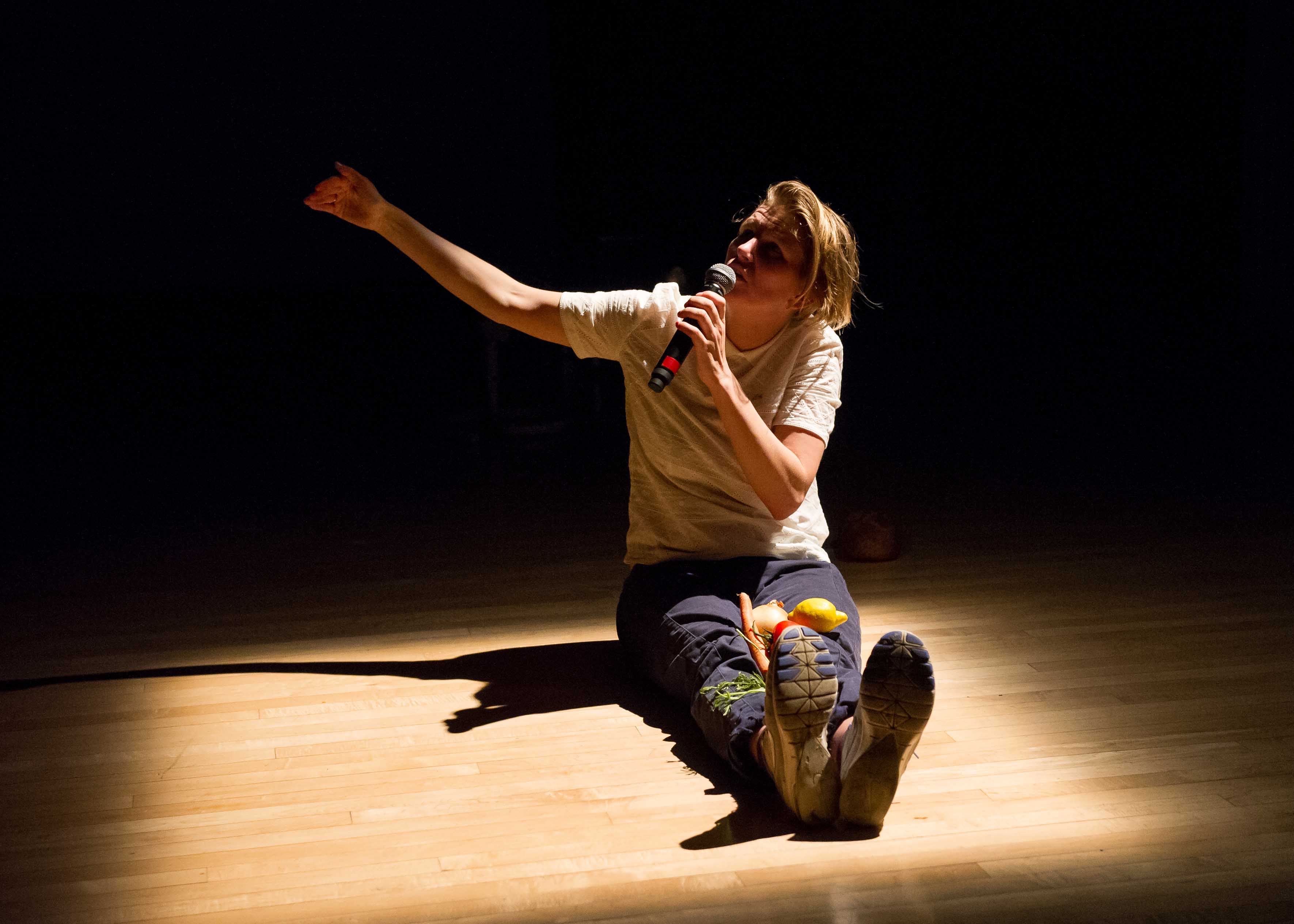 It was a strong follow-up for the artist, who just recently closed her installation For Forgetting at the New Museum, another kinetic installation work that addressed the fluid identities and online pitfalls of international fiscal investments and phishing scams in equal turn. First performed in London in 2010, the work has evolved considerably, incorporating a booming multimedia array, and accompanied by the artist’s bizarre, gestural movements and positions. Prouvost stalked across the stage, cradling vegetables and expressing concern for her grandfather’s disinterest in the surreal scenario presented.