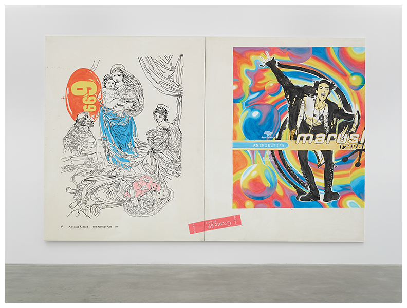 Spread over Matthew Marks Gallery’s spaces on 502, 522 and West 22nd Street is an exhibition of works by late Berlin-based artist Michael Majerus. Presenting over twenty-five paintings and multimedia installations, the show is the most comprehensive of Majerus’s work in the United States as well as the first staged in the country since his life was cut short at the age of 35 by a plane crash in 2002.