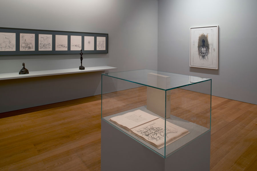 For the last 30 years of his life, Giacometti focused his artwork on realistically and accurately portraying what he saw. Between the years of 1959 and 1965, one year before his death in 1966, he created 150 lithographs with text to be made into an artist’s book about Paris, his favorite city.  The idea for the artist book was inspired by Giacometti’s friend, a publisher named Tériade, who also published Fernand Léger’s La Ville, another book of lithographs about the city of Paris.  These rare lithographs and drawings, original maquettes, several important bronze sculptures and paintings, and a selection of photographic portraits exhibit the artist’s categorical attempt at documenting the life of the French capital.