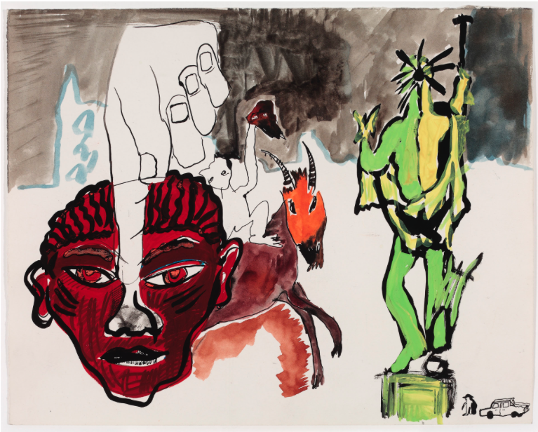 Born in 1959 in Edinburgh and raised in Trinidad and Canada, Doig attended St. Martin’s College starting in 1979. “It was a great time to be studying painting,” he has said of his time in school and the works here show evidence of an enthusiastic, free-thinking and uninhibited time. When the students were going to travel to Italy, for example, Doig says that he immediately began researching Italian art and responding to it in preliminary drawings even before they had left the UK.