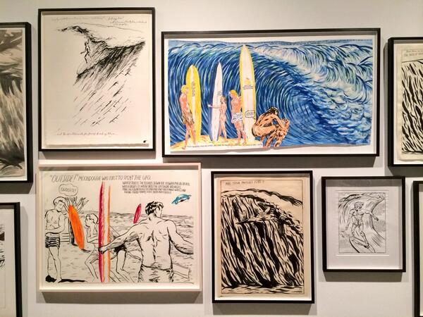 Raymond Pettibon, Are Your Motives Pure?’ Surfers 1985-2013 (Installation View), via Art Observed