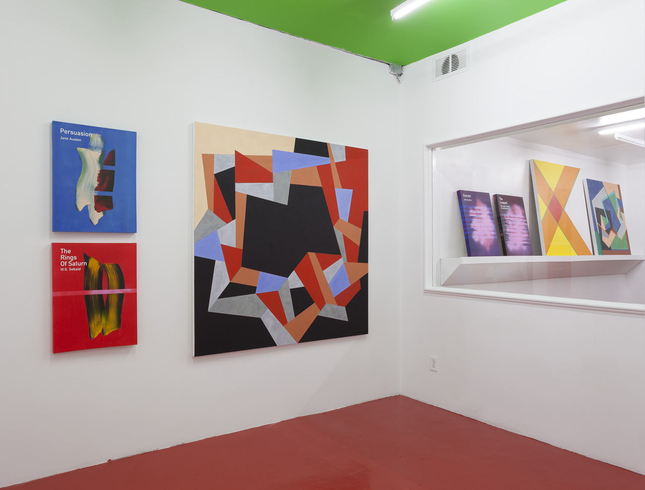 On view at P! in New York is two-person exhibition featuring works by Elaine Lustig Cohen and Heman Chong, in which the artists curate and commission works from each other. The exhibition emphasizes the concept of holding multiple roles within creative work. Both Lustig Cohen (b. 1927) and Chong (b. 1977) have worked in a variety of different positions and roles in the art world, including artist, designer, curator, dealer, and writer, and hold a mutual respect for each other’s work. For the exhibition, this respect played out in the gallery as Chong selected works from Lustig Cohen’s body of paintings, while Cohen commissioned Chong to create nine new pieces within his ongoing series of imagined designs for book jackets.