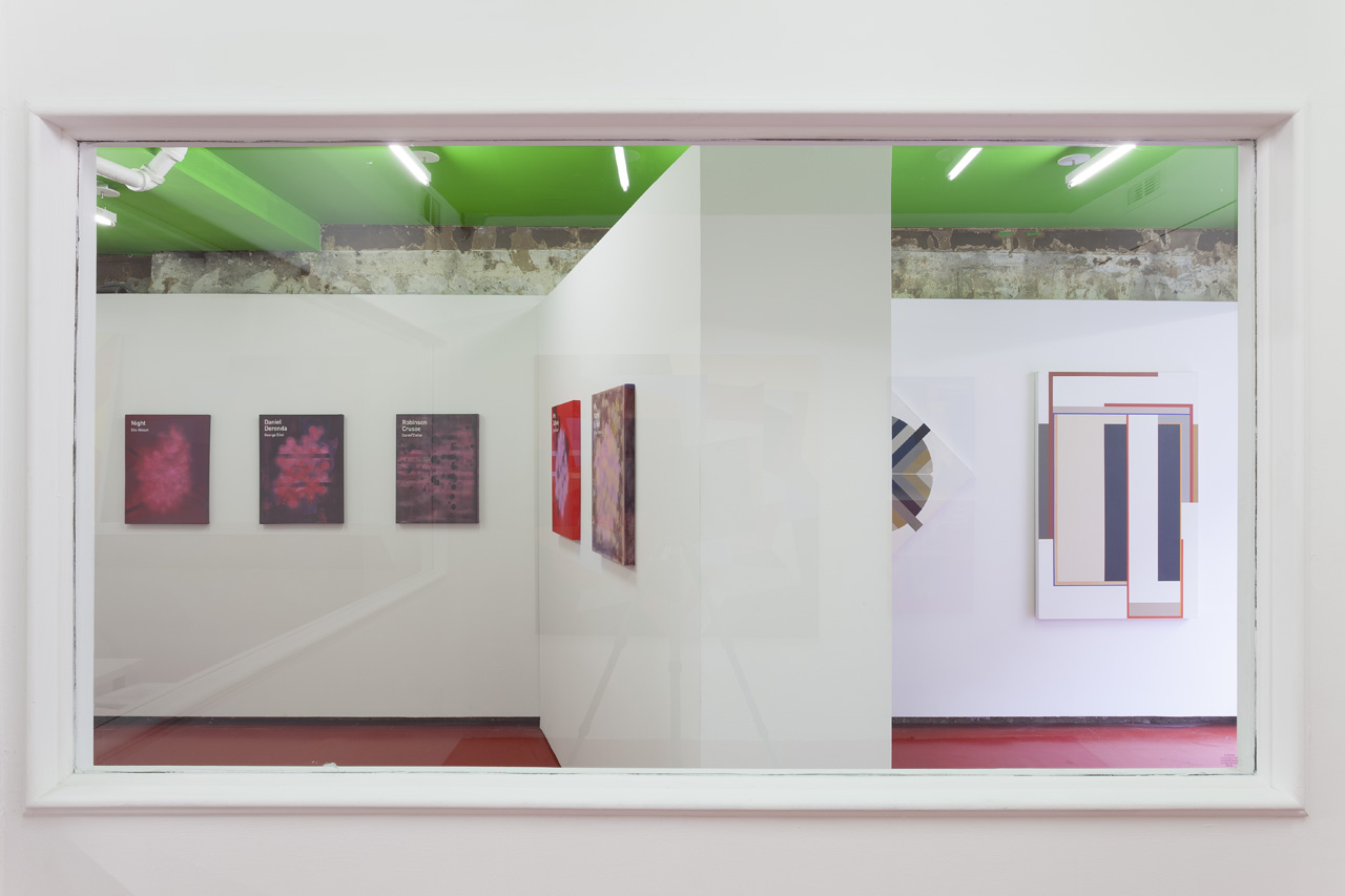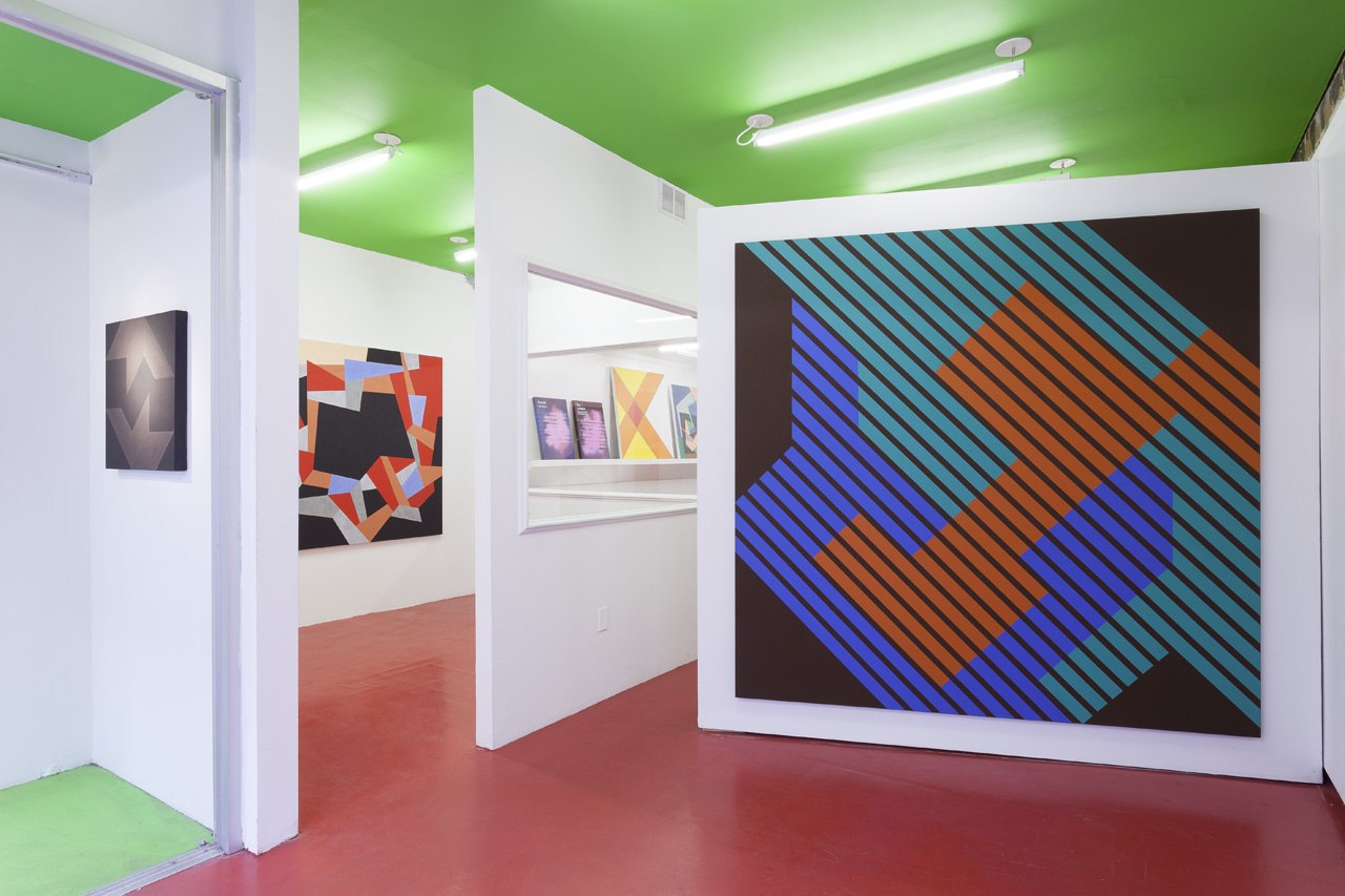 Taken together, the set of works play off each other quite well. Lustig Cohen’s geometric forms and sharp, colorful lines work in counterpoint to Chong’s often slurred, blurry styles, but his occasionally form-focused approach to some of his works locks his work back into a more unified presentation. The flow and exchange, particularly when repositioned by Katrib, gives the respective works ample room for dialogue.