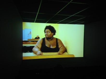 Strongly tied to her previous video installations, such as Cheese (2007) in which extremely long-haired women milk cows and make cheese using a machine powered by the movement of their long hair, or Mary’s Cherries (2004) in which a woman’s extremely long finger nails are clipped and then formed into maraschino cherries, Rottenberg pushes the limits of reason and logic, using common materials in unorthodox ways. Blending eerie and occasionally irritating images into her argument, she transforms the familiar into the foreign. Fingernails, hair, dough or bingo balls stand out as foreign and distant objects that provoke and confuse the viewers.