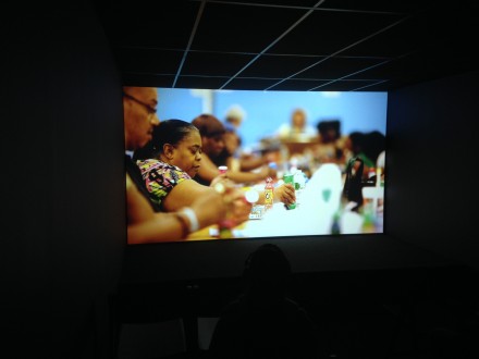 Mika Rottenberg, Tsss Tsss Tsss (2014), via Osman Can YerebakanFor her first exhibition at Andrea Rosen Gallery, titled Bowls Balls Souls Holes, Rottenberg builds a mostly phantasmagorical atmosphere extending beyond the video into the installation it is played in. Set in a Harlem bingo hall, Bowls Balls Souls Holes (Bingo) builds an alternative reality in which numbers, bingo balls and clothespins play further roles than their mundane functions. Here inside this bingo hall, different bingo balls serve as portals to another world composed of rooms connected in an unusual harmony. Rottenberg who is known for employing women of different sizes, colors and manners in her videos, once again brings together different body shapes and racial backgrounds, often blurring the line between the reasonable and the absurd. Present in the center of this other world, accessible through a series of shifting and moving compartments is a man continuously and methodically clipping clothespins to his face.