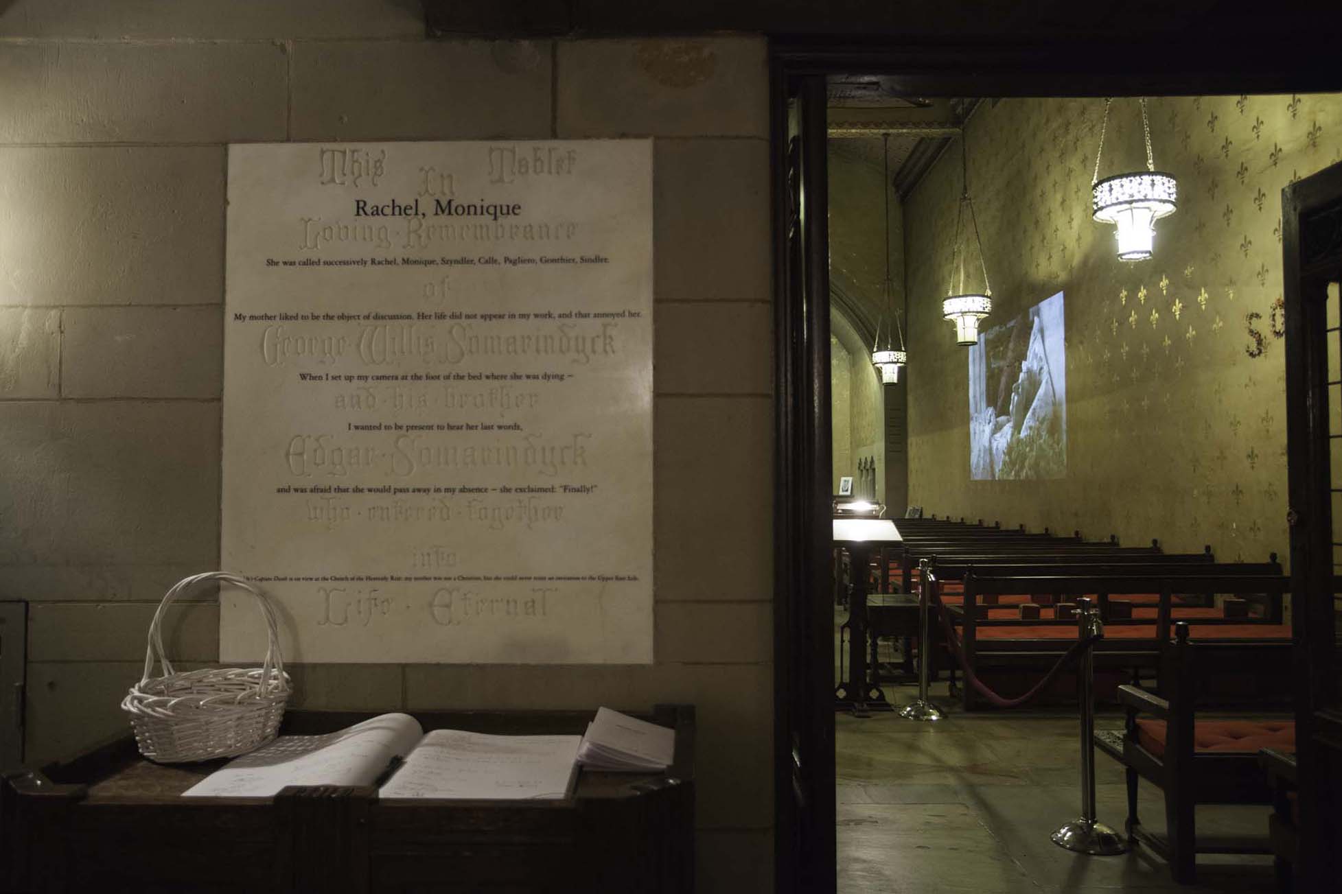 Since May 9th until June 25th this year, the Episcopal Church of the Heavenly Rest, in conjunction with Paula Cooper Gallery, has been transformed into a gateway that marries the universality of sacred space and the experience of life and death through the singular exploration of a specific life. Artist Sophie Calle is known for her deeply emotional work and propensity for crossing the boundaries of personal and social space in a way that is successful in its dramatic and often controversial appeal to the human condition. “Rachel, Monique” may be one of her strongest works in this vein to date.