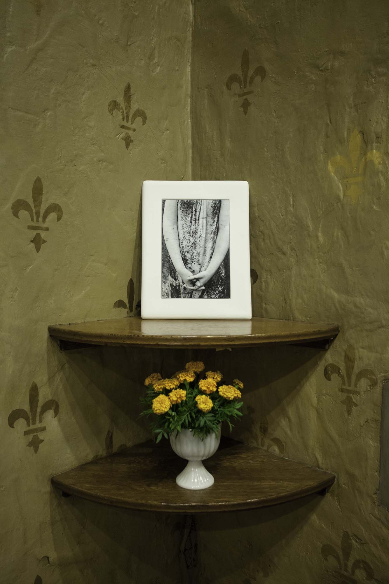 The show serves as an examination of and homage to the life and death of Calle’s late mother, Monique Sindler, with a primary focus on her passing. It takes place in a transept, isolated from the main body of the church, at the entrance to which are words printed onto a carved tablet of stone: She was successively called Rachel, Monique, Szyndler, Calle, Pagliero, Gonthier, Sindler. My mother liked to be the object of discussion. Her life did not appear in my work, and that annoyed her. When I set up my camera at the foot of the bed in which she lay dying – I wanted to be present to hear her last words, and was afraid that she would pass away in my absence – she exclaimed: “Finally!”