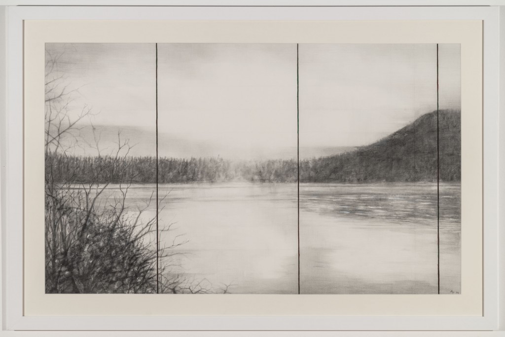 This show seeks to distill the essence of the Finnish aesthetic landscape, offering a platform to young artists to address the qualities of a world unfamiliar to many North American audiences. Ville Andersson’s Reflection, for example, is a haunting portrait, testing the photograph’s potential for capturing the ephemeral. Momentum throws a body backwards into an anonymous space of deep grey tones, while a twisted, almost frightening grace settles over the subject’s alien and explicitly human form. The photograph’s unnerving aspect is reinforced by the disorientation of shadow, surface, and layers against or into which the body is tossed. In Aleksi Tammi’s Port a similar sense of the abyss is channeled, as a single erect form stands tall on a shoreline.