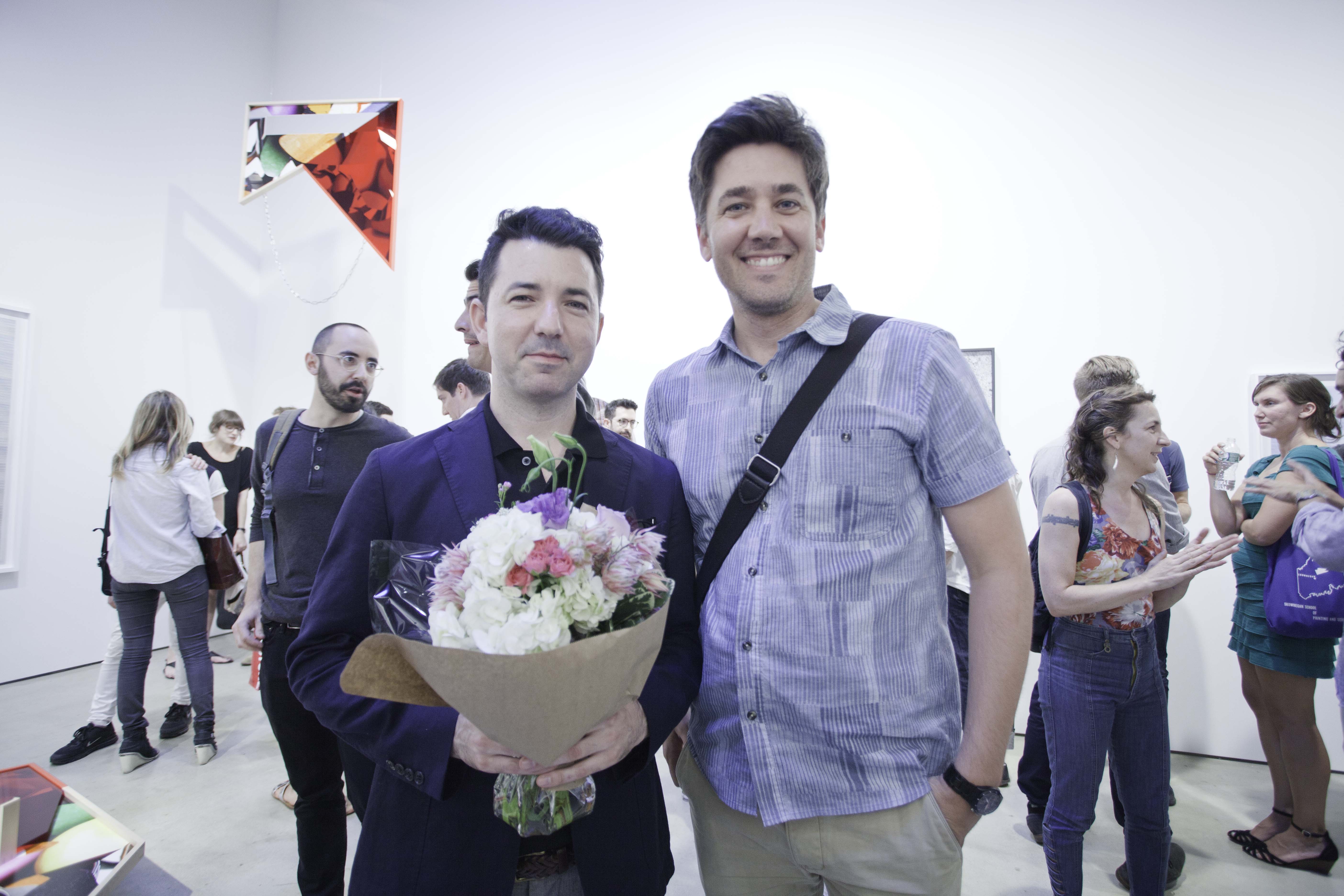 Ethan Greenbaum (left) and friend at the “Fixed Variable” opening at Hauser & Wirth on June 27th, 2014