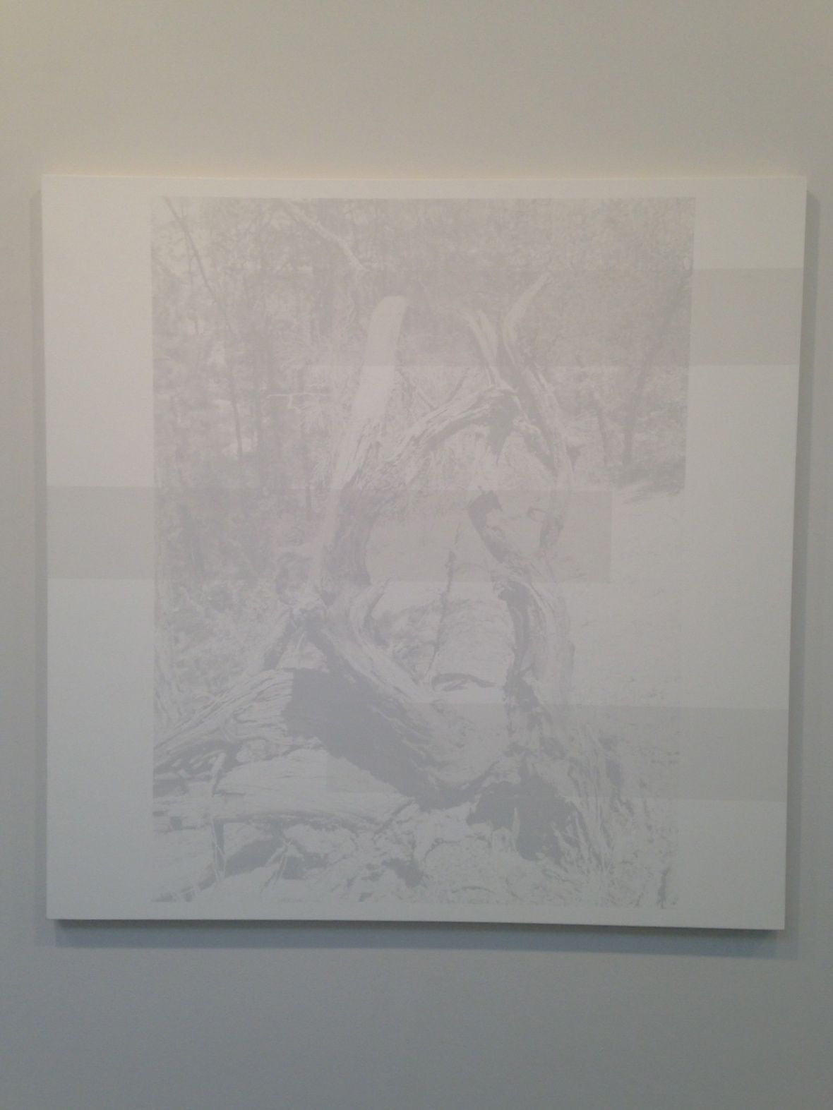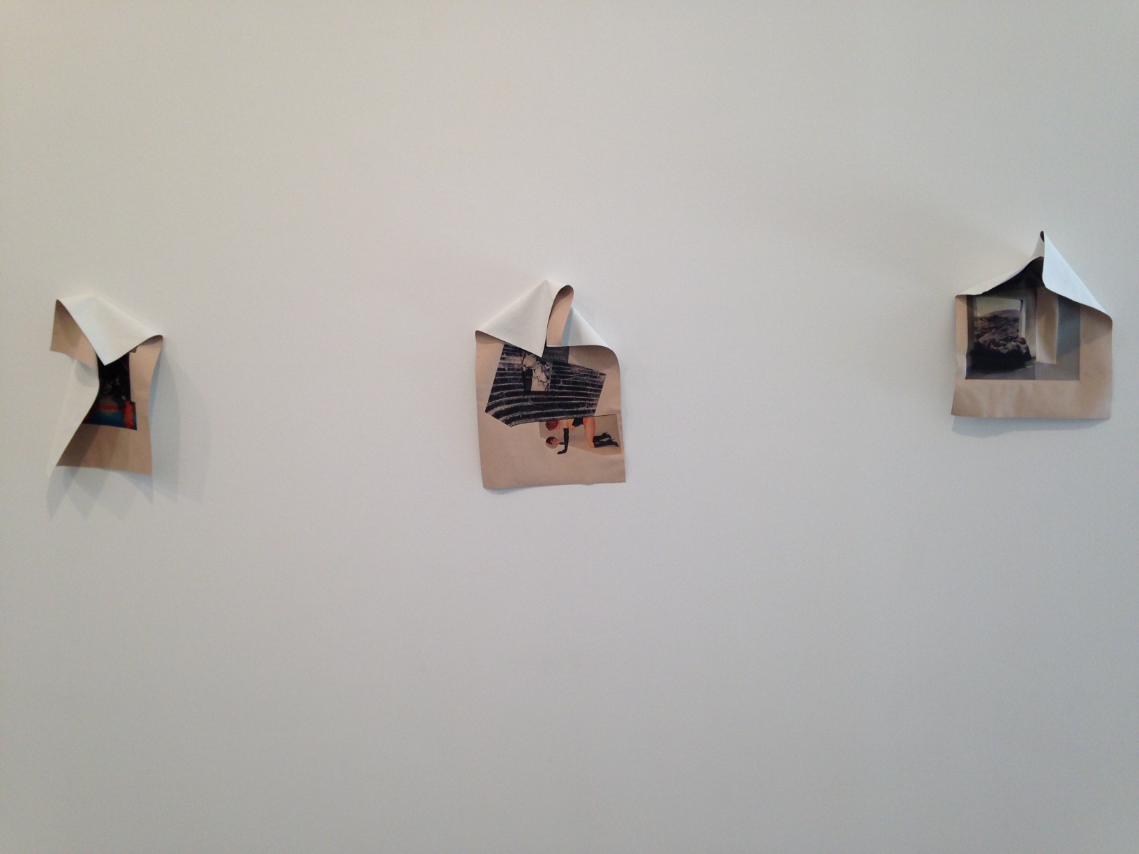 The phenomena of stabilization is embodied in various works, including A.K. Burns’ three piece arrangement of collages hung on the wall using pennies, commenting on consumerism and commodification, Maseraine, Cameron Martin’s mediative re-toned imagery of a slow paced nature and Carolyn Salas’ wall relief of painted resin suggesting an ambiguously foreign formation titled The Breakups #1. Striking a humorous accent among the display of the works, Tag um Tag guter Tag Nr. 0 (Day), Peter Dreher’s painting of a half empty water glass is still present on the wall from the gallery’s previous exhibition, connecting with both aspects of the current show: an empty glass waiting to be filled while secured resolutely to the wall.