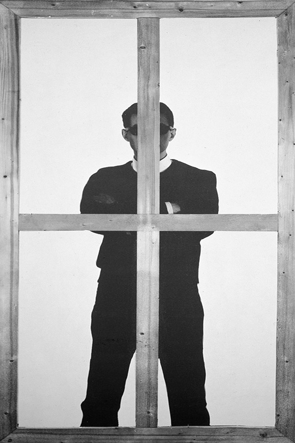 Approaching the physicality of a painting as a subject matter to contemplate on, Paolini urges viewers and artists alike to dismantle the components of a painting beyond what is visible or tangible. What the artist calls “the space of a painting” is this exploration of the extensions a painting can (or cannot) reach aside from the limitations of the canvas and the pigment. The most evident fruit of this study is Delpho, a large scale combination of photography and painting, presenting a black and white photograph of the artist wearing dark sunglasses hiding behind an actual canvas stretcher. The viewer must decide the position that they themselves take in relation to the artist, whether they are on the artist’s side of the canvas, or if they are the canvas themselves.