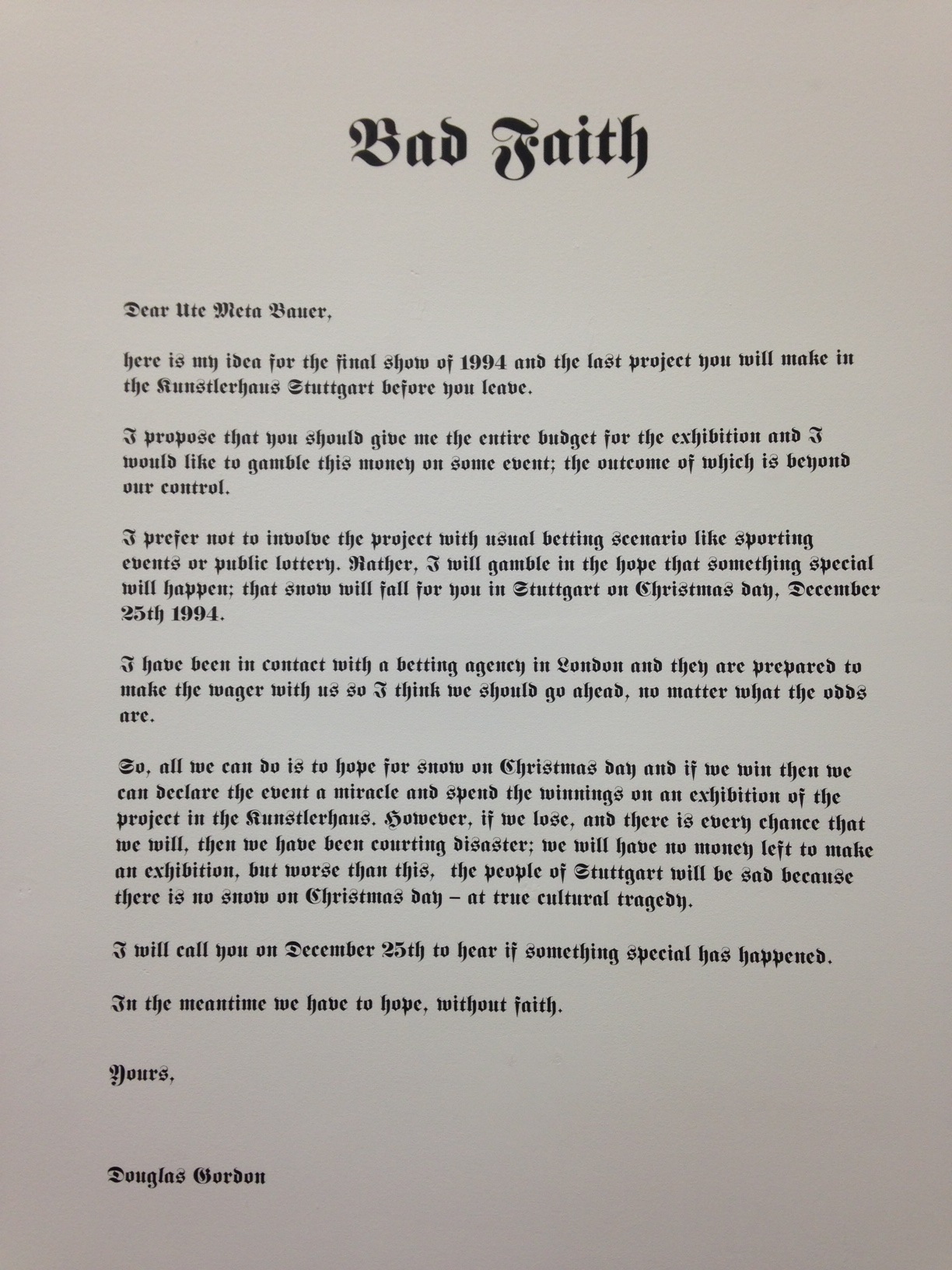 Douglas Gordon, Bad Faith (1994)