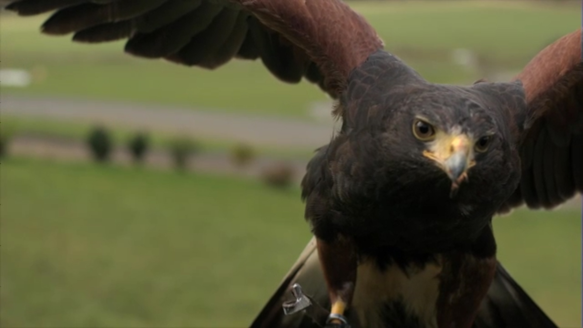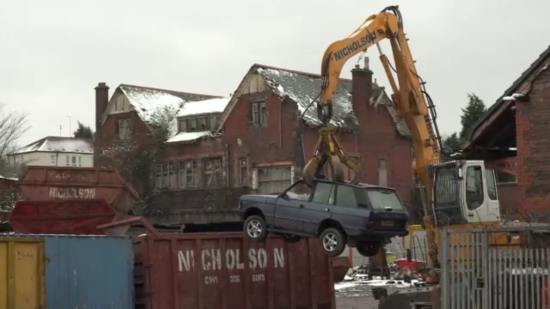 In other scenes, the viewer cannot escape the splendor of eagles, owls and hawks flying in slow-motion over the bucolic landscapes, nor can they escape the tagging and leg-flags attached to the endangered, closely monitored birds.  Neither fowl nor fauna, this deliberate comment on naturalism is accentuated as the animals fly through dust and pollen particles, before the camera cuts dramatically to various shots of machinery demolishing cars.  Old red brick Victorian terraced townhouses loom above as the vehicles are unceremoniously entombed.  Through these ritualized movements, Deller achieves something of a critical nostalgia for the bygone days of British Empire in exchange with the current global economy.