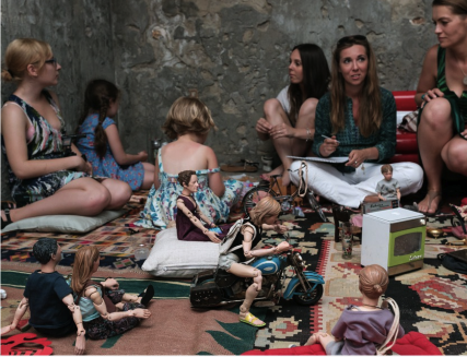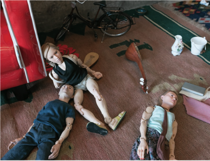 Althamer’s own family, particularly his children, play the protagonists in the piece, sitting in the space and allowing audience members to come and sit with them, converse or play. Audience members are encouraged to take part in the happening as well, using handmade puppets which Althamer created to represent his own family as well as people outside his family. People then improvise scenes or messages from their own imaginations. Similar to exercise often used in family counseling and therapy, Althamer here turns the situation open, allowing any visitor to participate and examine their own preconceived reactions to the situation, or to imagine new social alternatives.