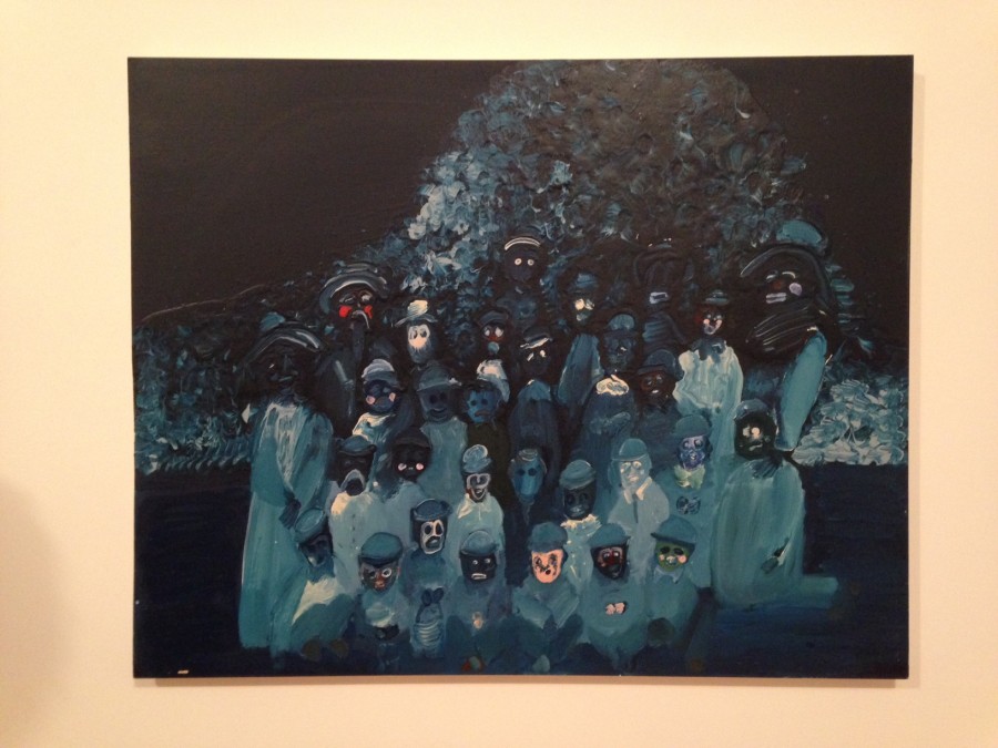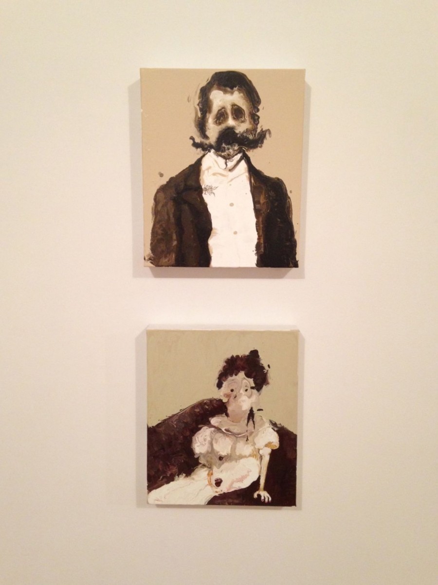 As Figgis’ models depart from the realm of wholeness in presence, they transcend into a stage of subconscious where physicality loses its cruciality. A disfigured man, possibly Marcel Proust, in the work Mustache, gains a substance independent from its subject matter, yet maintaining a slight tie to his own corporeality. Interiors melt into phantasmagorical landscapes, and leave the viewers struck by the intangible state of their nature. In others, members of an unfamiliar cult or an eerie gathering struggle to stand together with their ghostly expressions and foreign demeanors in Where we are now, creating a disturbing surface made the more unnerving by the indeterminacy of its background.