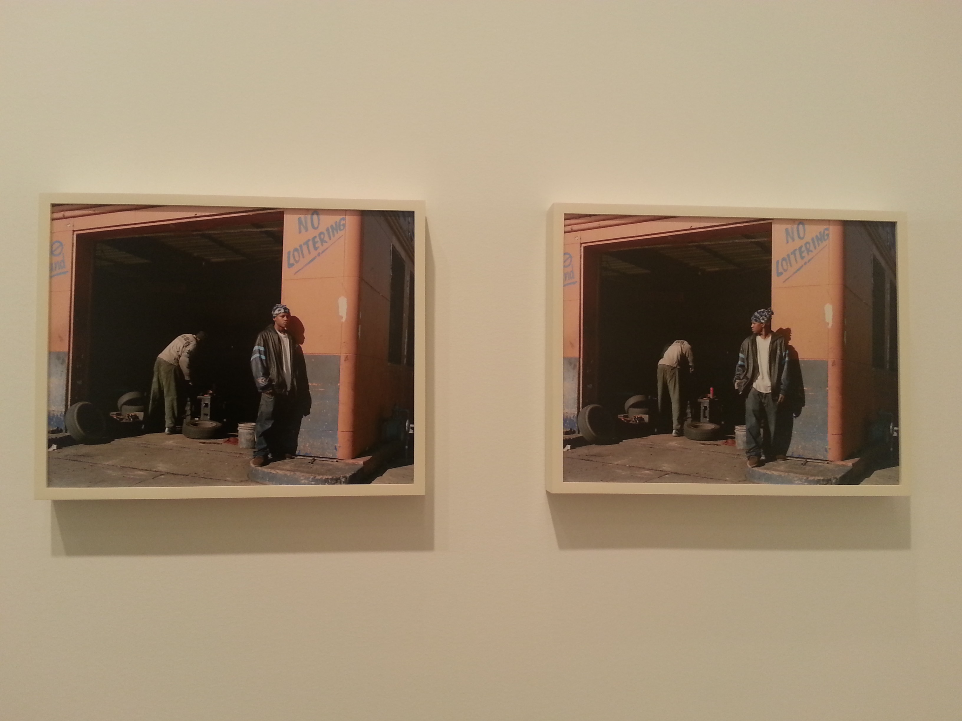 The photographic prints are deceptively three-dimensional. Hung in the gallery on frames that jut out sharply from the walls, the sheer vibrancy and depth of the photographic prints in Sincere Auto Care is enough to convince the viewer that they could fall right through the frame and into the scene depicted. But beyond the beauty of the objects themselves, there is a sensitivity that becomes apparent in the progression of the show. Kurland’s decisions on when to take the photographs she takes are decisions that determine her subjects as worthy of the photograph; there is a sense of focus, calm and fulfillment highly present in each subject, including the few small children that serve as contextual framing devices for the auto workers in the images, as well as those that suggest urban nature and death. In this way, the themes and visuality of Sincere Auto Work are reminiscent of religious art.